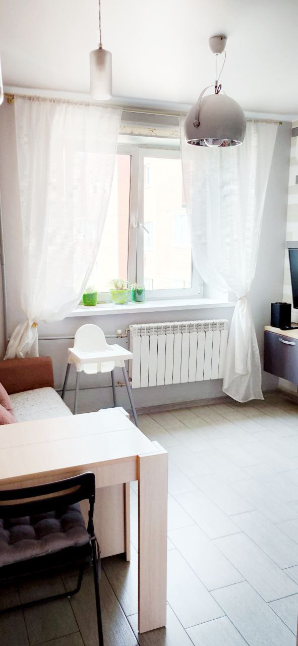 Квартира очень светлая, большие окна, вид на аэропорт Шереметьево.