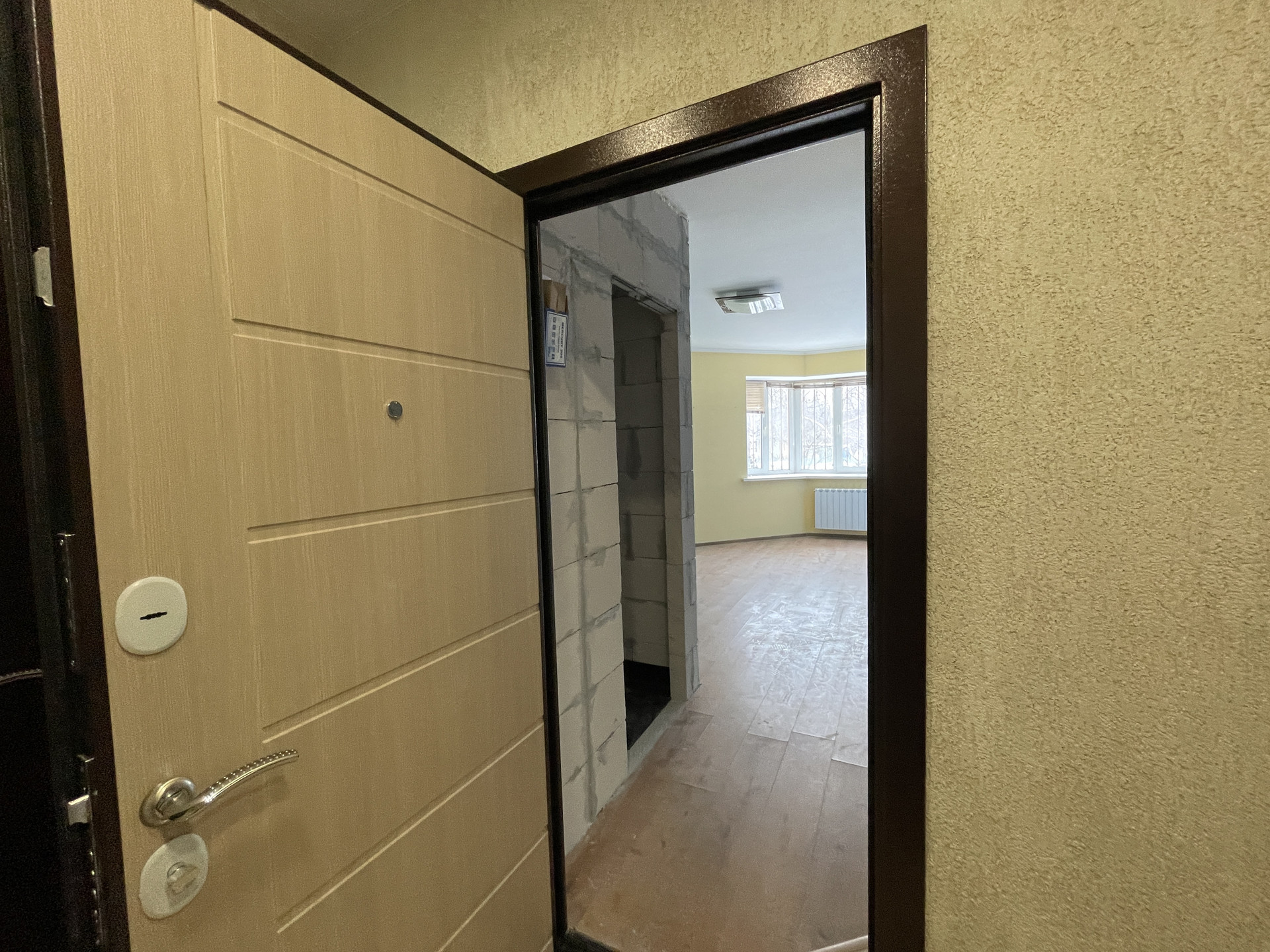 Студия с чистовым ремонтом, готовая для проживания.  На полу ламинат, на стенах обои, санузел в плитке. Есть лоджия 4 кв.м, застекление - стеклопакеты и решётка. Окно выходит во двор. Высокий 1 этаж.