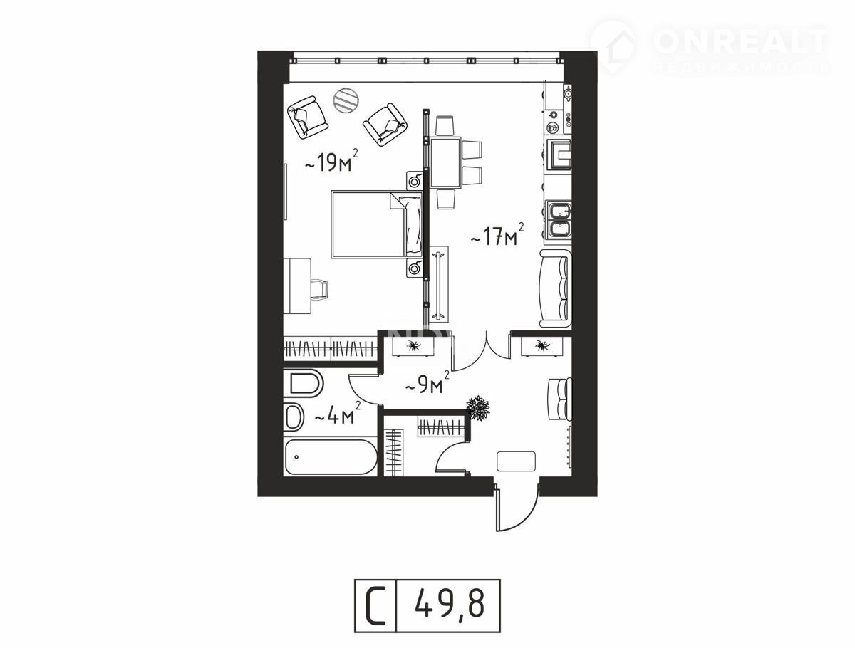 Общая площадь 49.7 м2