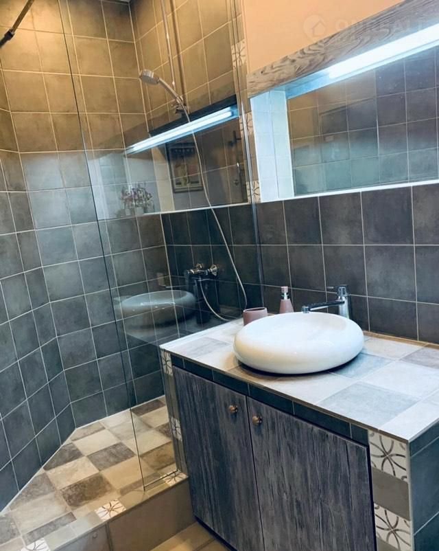 *   Санузел: стильная сантехника, душевая кабина, стиральная машина.