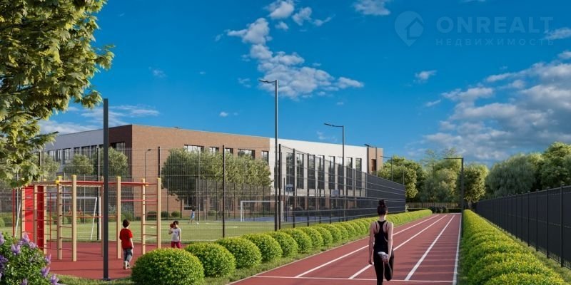 Рядом с домами находится пруд с пирсом и благоустроенной набережной, тут же детский сад и школа, в 10 минутах расположены крупные торговые центры.