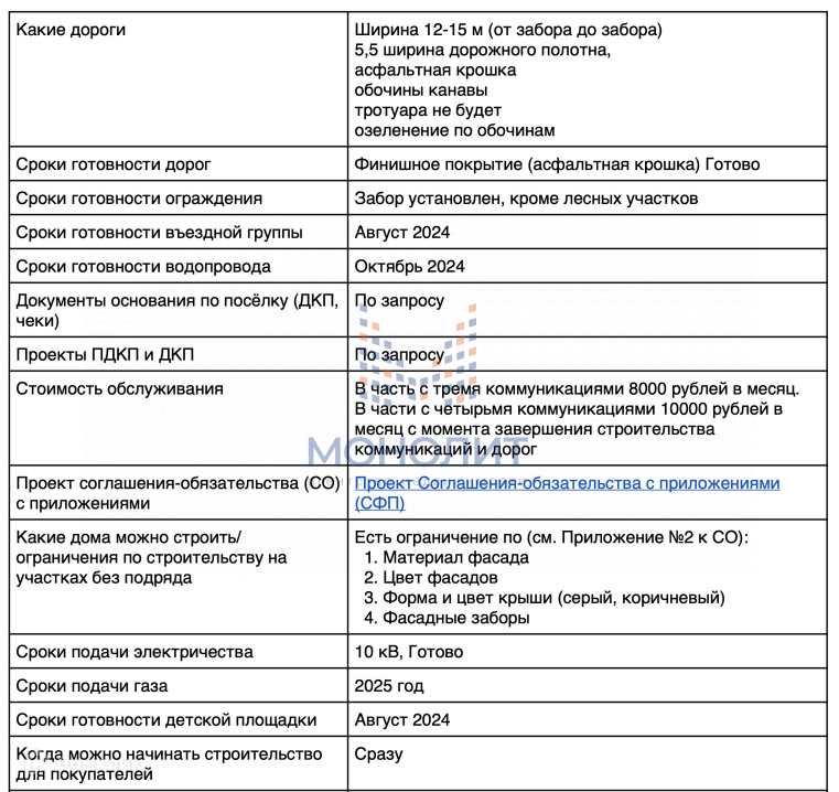 В поселке магистральный газ, центральное электричество 10 кВт, центральный водопровод, канализация.