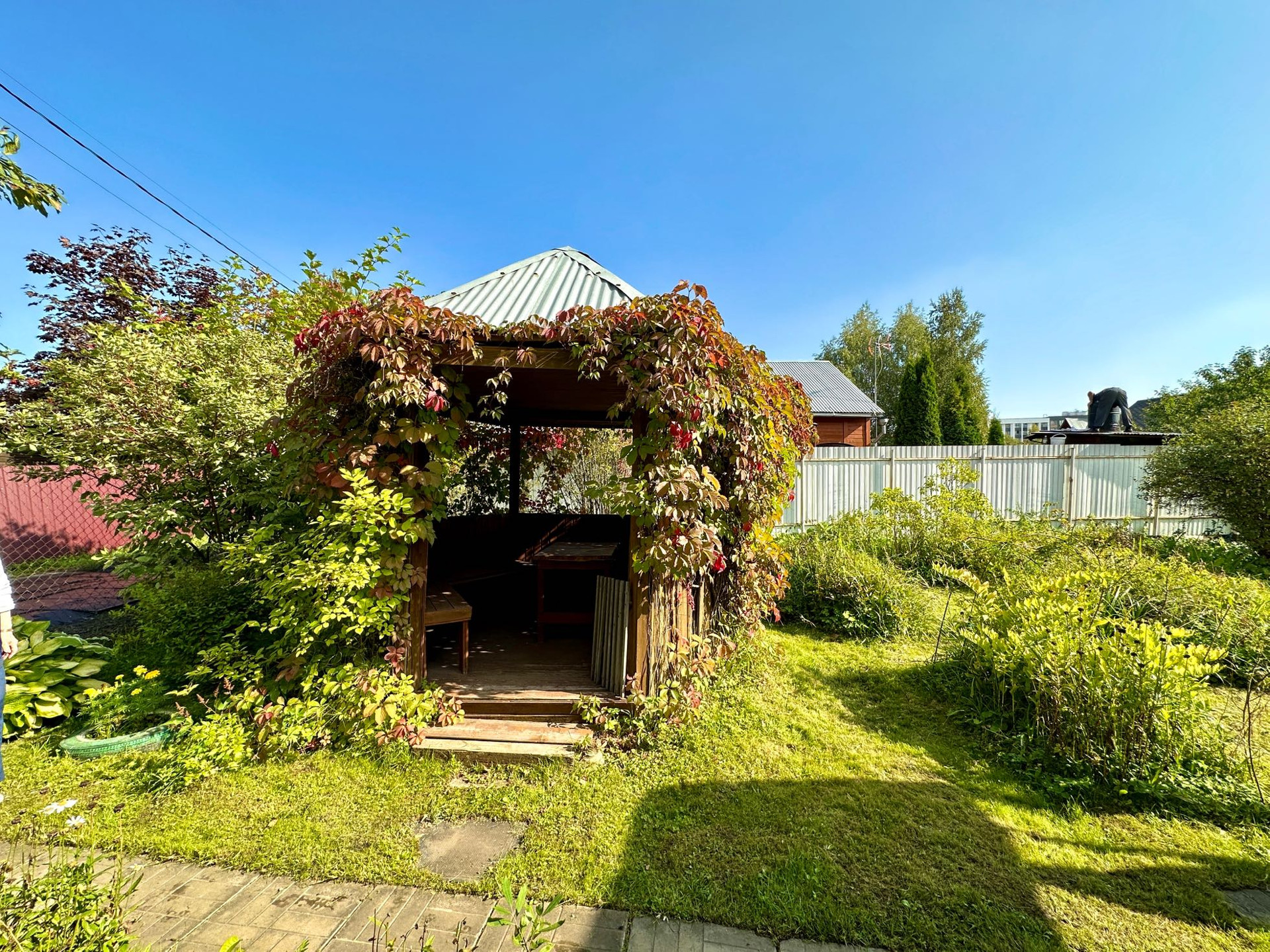 Территория СНТ огорожена, вьезд через автоматические ворота (открываются через приложение). Круглогодичный подъезд.