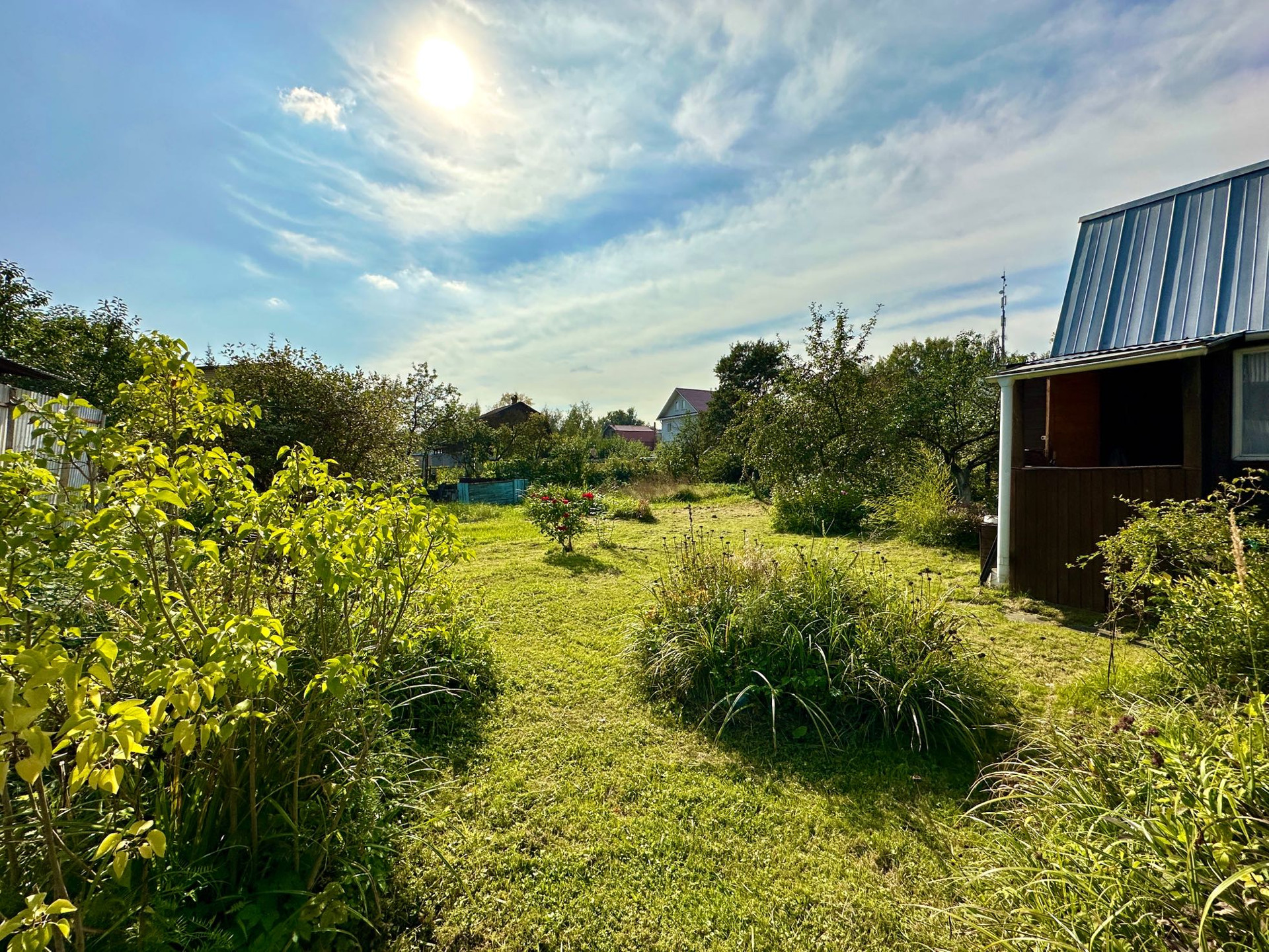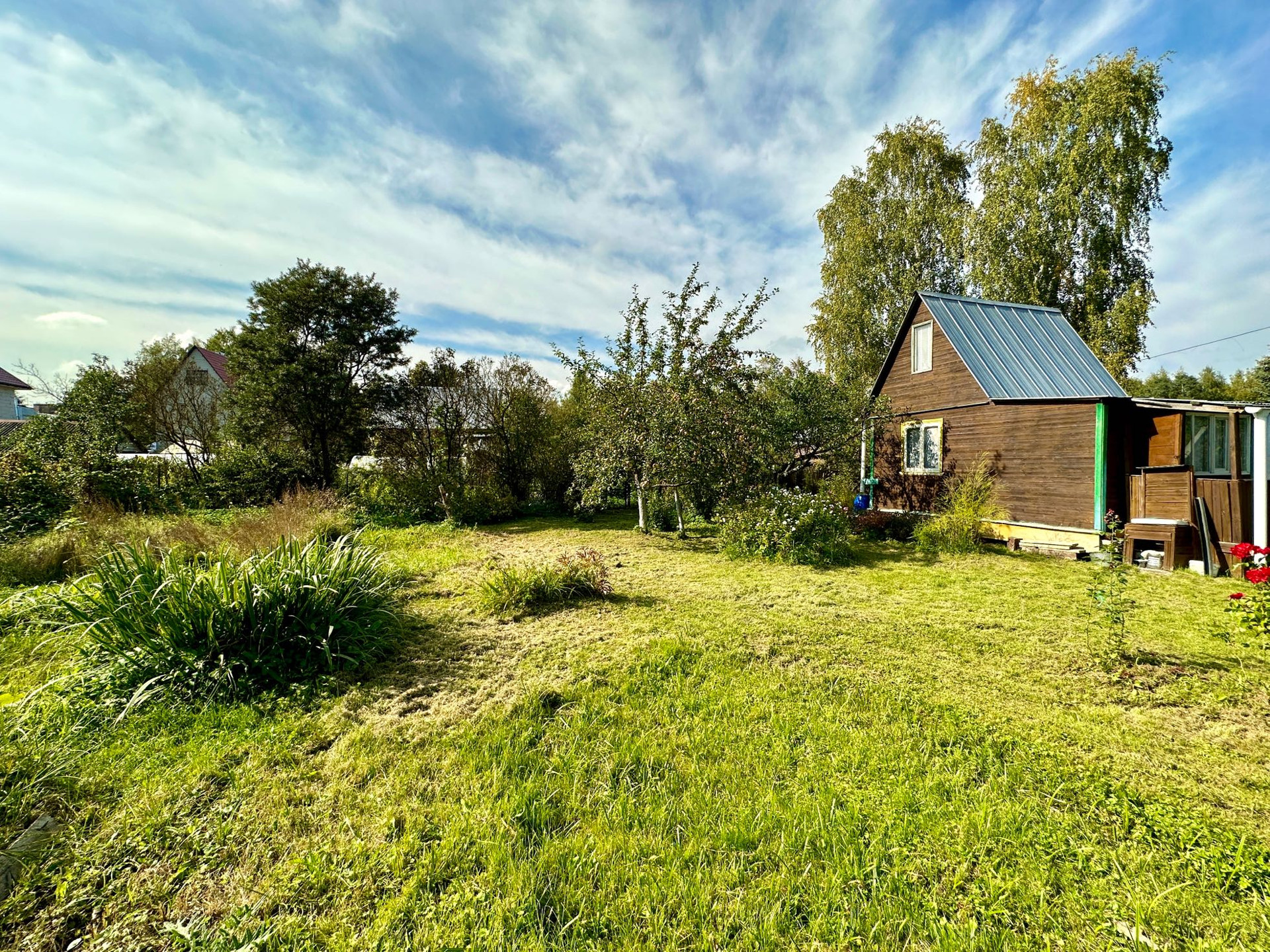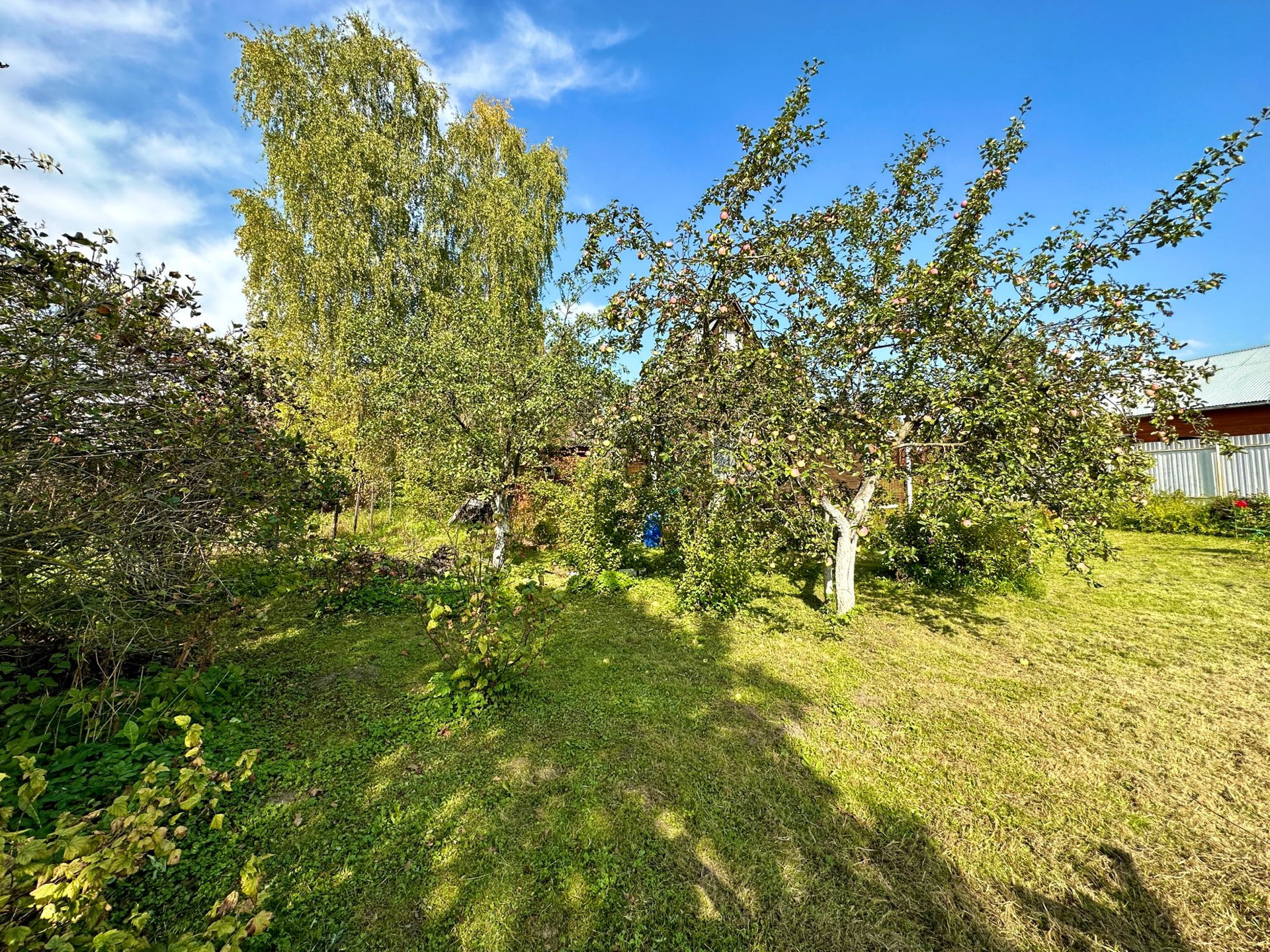 Участок ухожен.По периметру участка посажены плодовые деревья и кустарники (облепиха, яблоня, вишня, слива, малина, смородина).