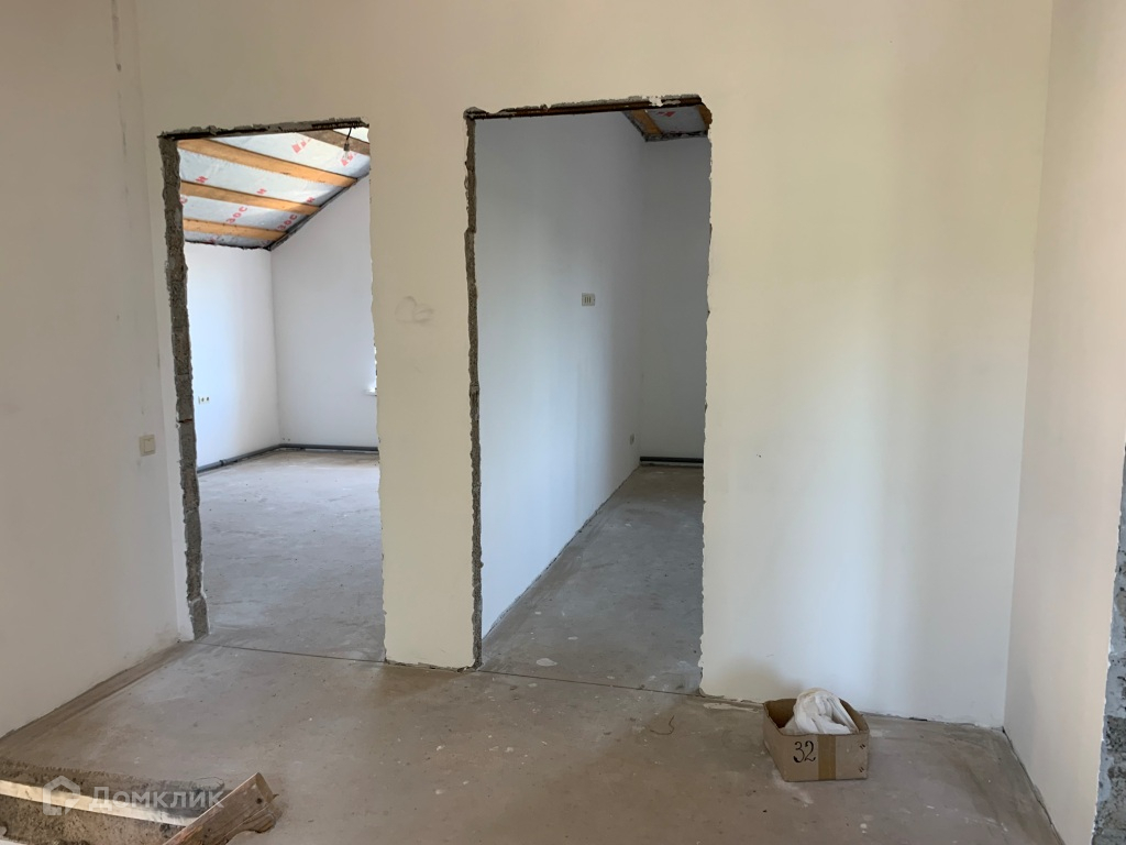 В доме на 1-м этаже: неотапливаемое крыльцо – 7,8 кв.м., прихожая – 2,2 кв.м., коридор с (планируемой) лестницей – 16,2 кв.м., котельная – 8,5 кв.м., кухня совмещенная с гостиной – 35,9 кв.м., спальня - 15,8 кв.м; на 2-м этаже: коридор – 10,9 кв.м., с/у – 7,4 кв.м., 3 спальни (16,4+19,4+27,4) кв.м. Коммуникации: электричество – 15 кВт (3 фазы), канализация - септик, центральный водопровод заведен в дом, центральный газопровод заведен в дом, по границе участка интернет.