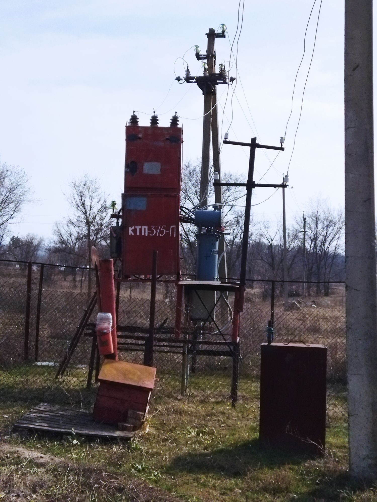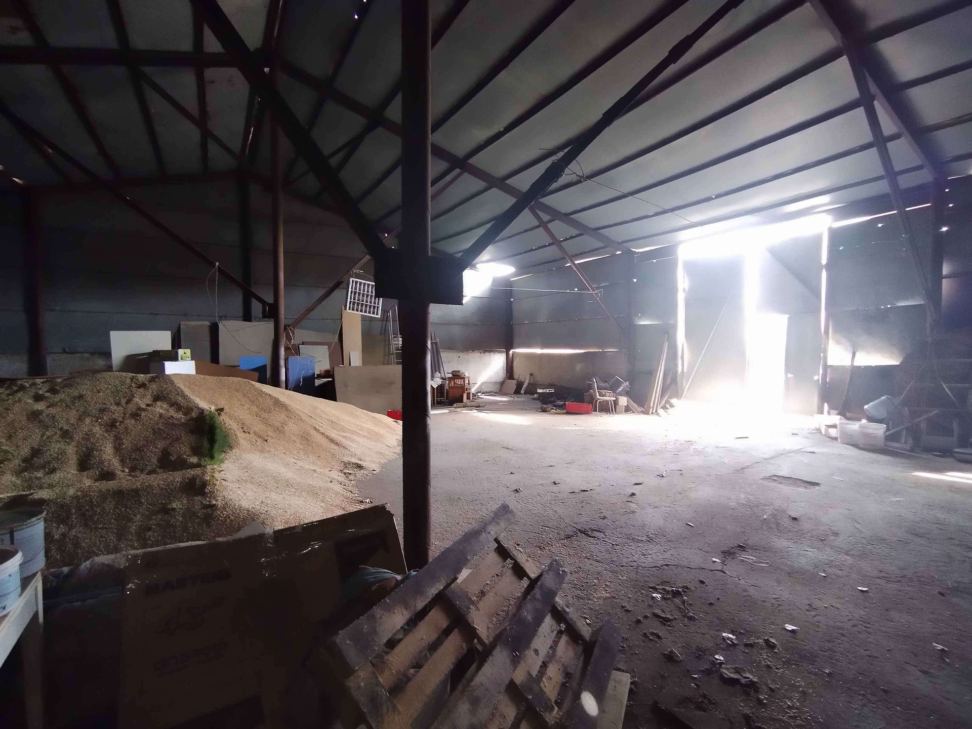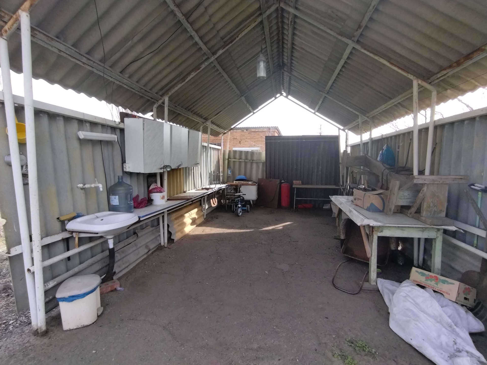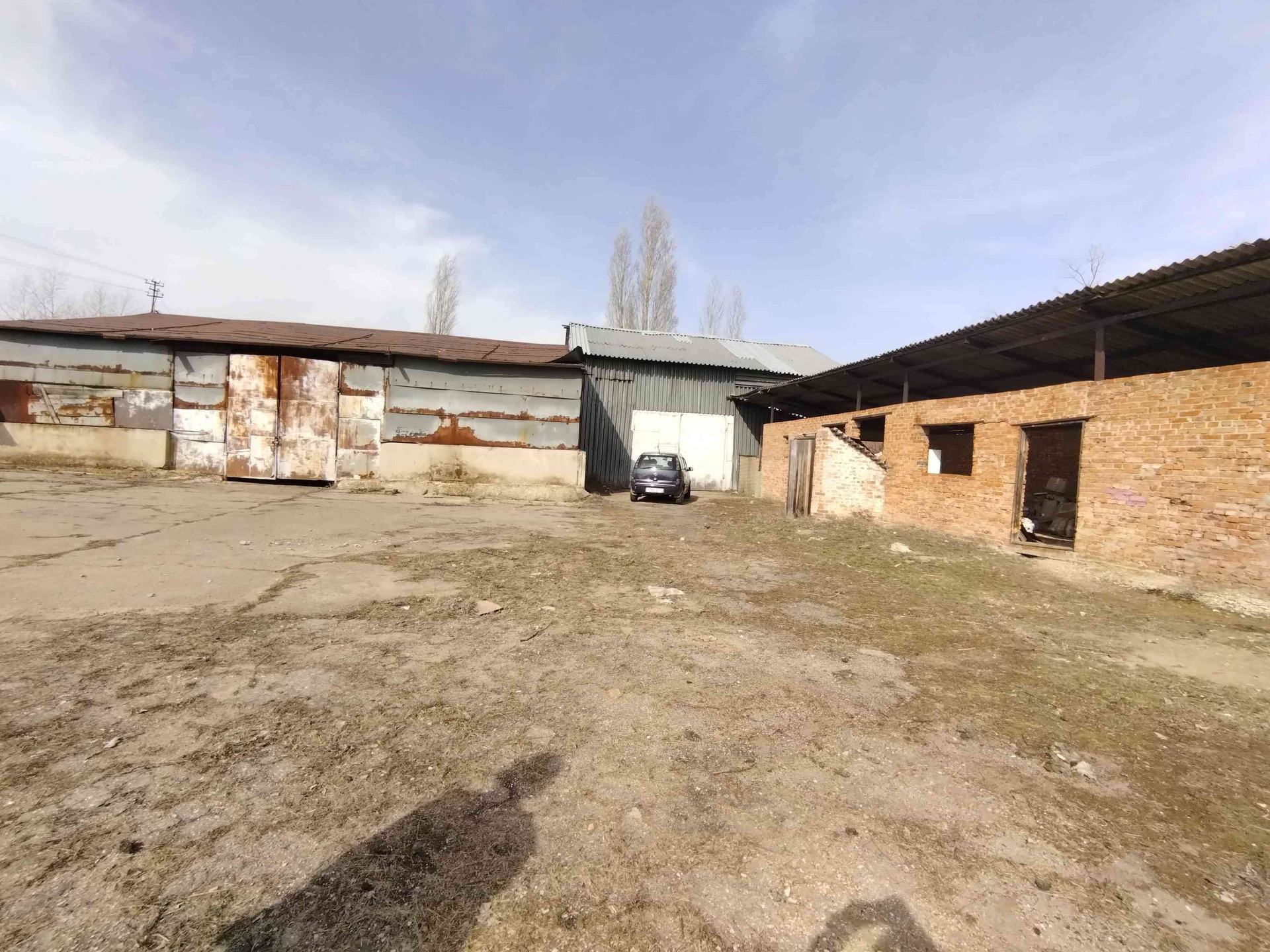 Ангар(складское помещение) и хоз постройки, личный трансформатор.