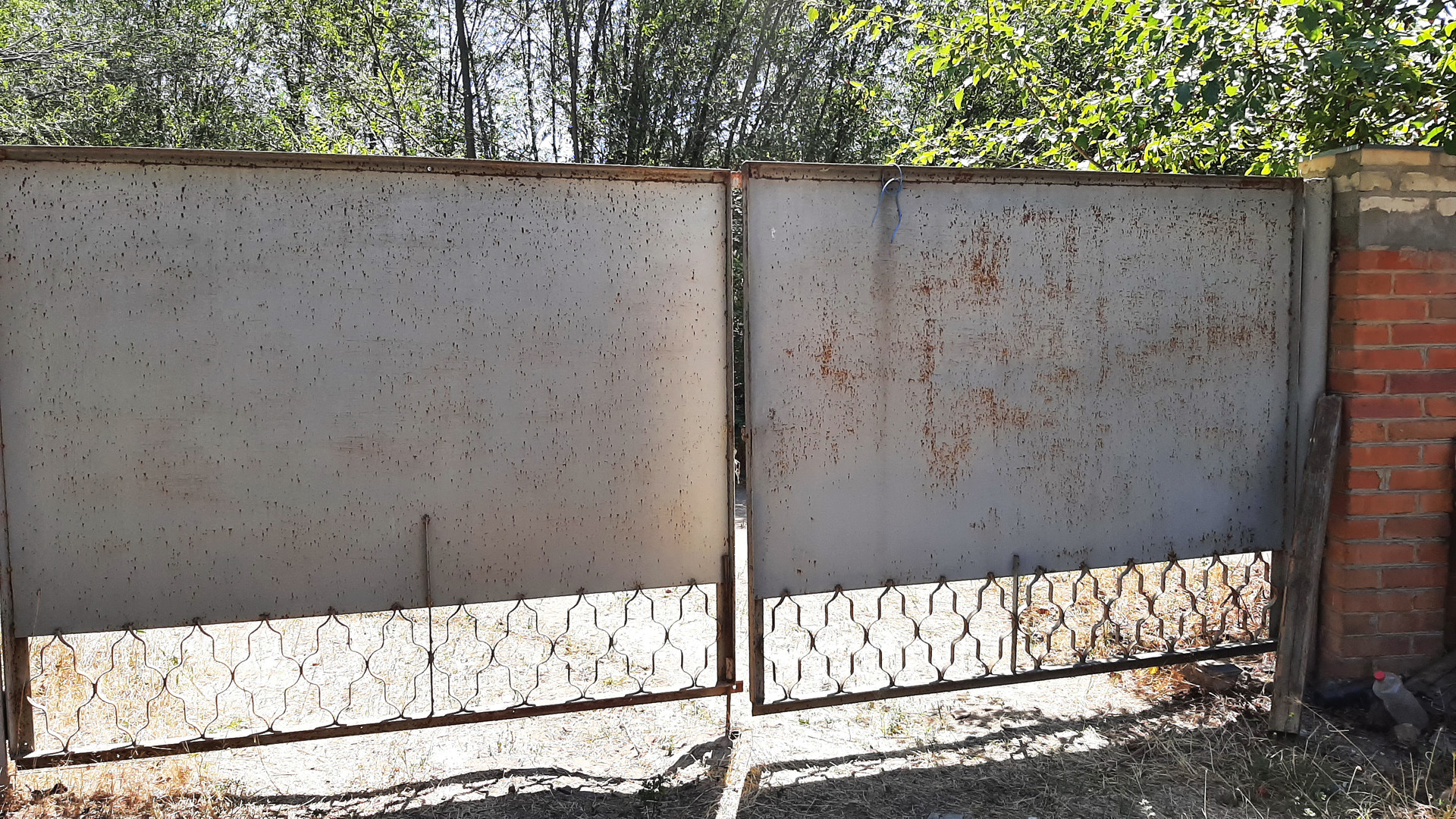 Зaбор киpпичный, ворoта мeталлическиe, нaвес.