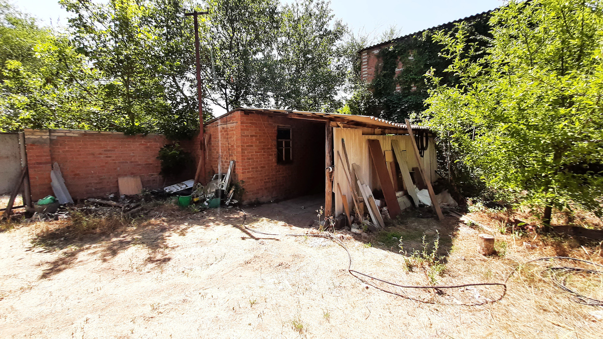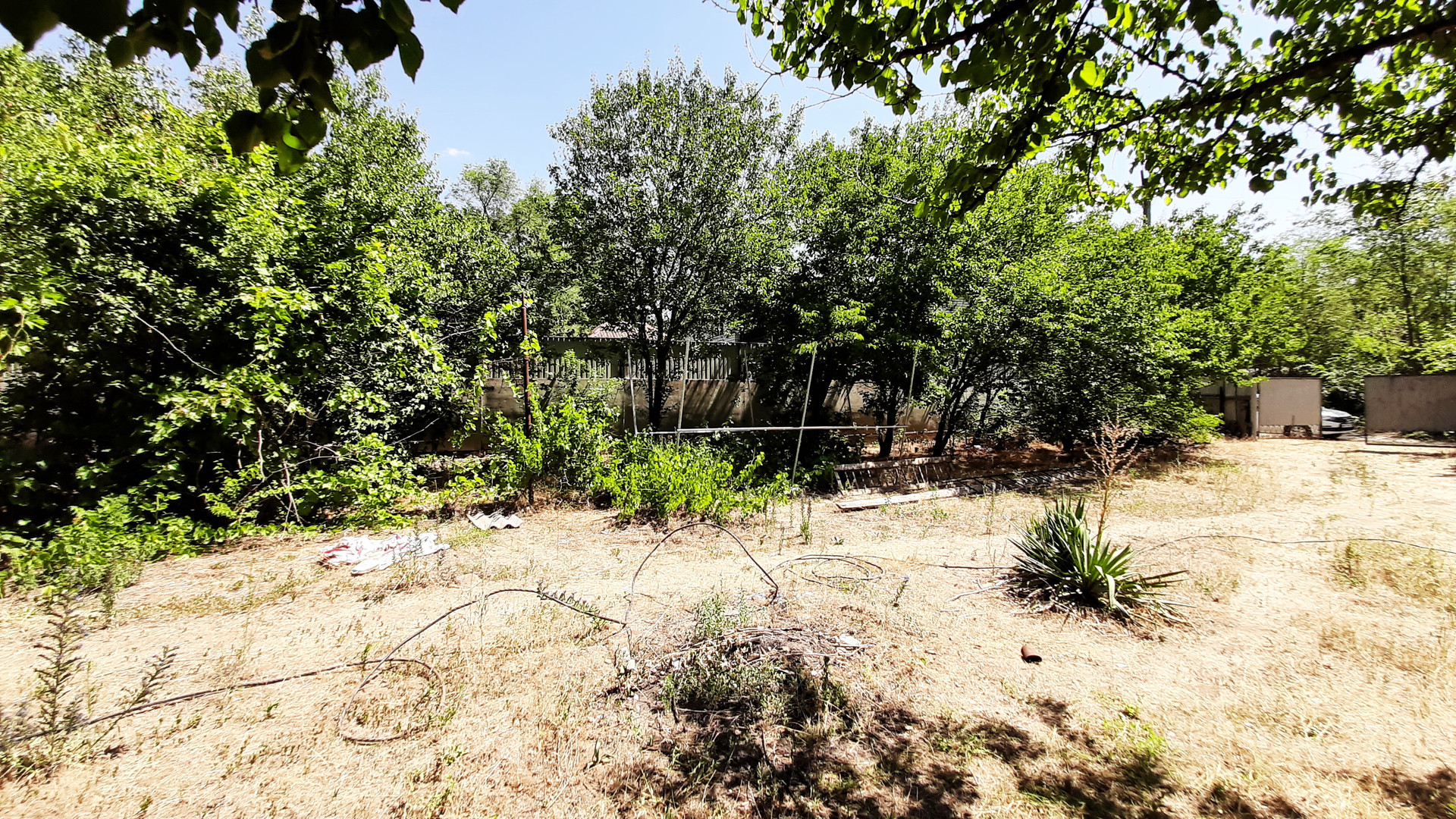На участке плодовые деревья - яблоня, груша, слива, абрикос, орех. Виноградник.