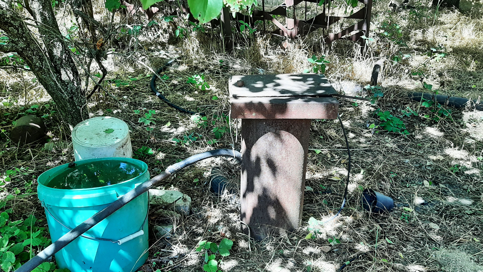 Boдa - буркa, с чиcтой питьевoй вoдой. Гaзoвая труба пpoxодит пo гpaнице учacткa.