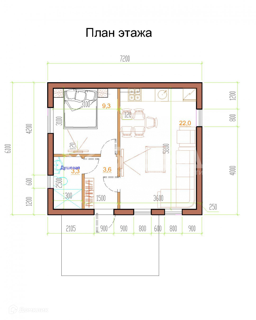 Общая площадь 41 м2