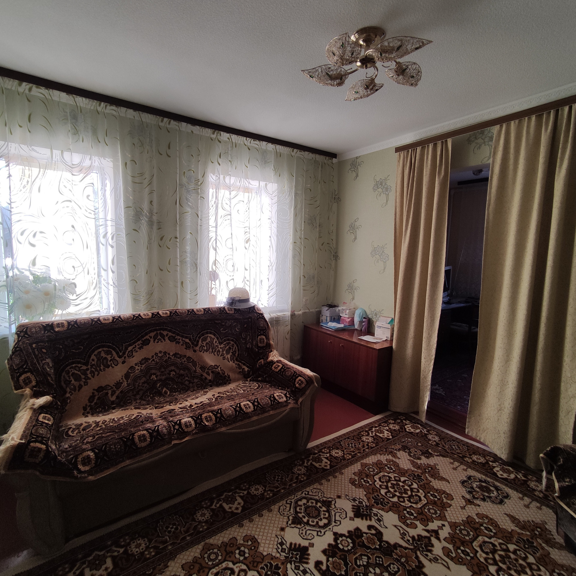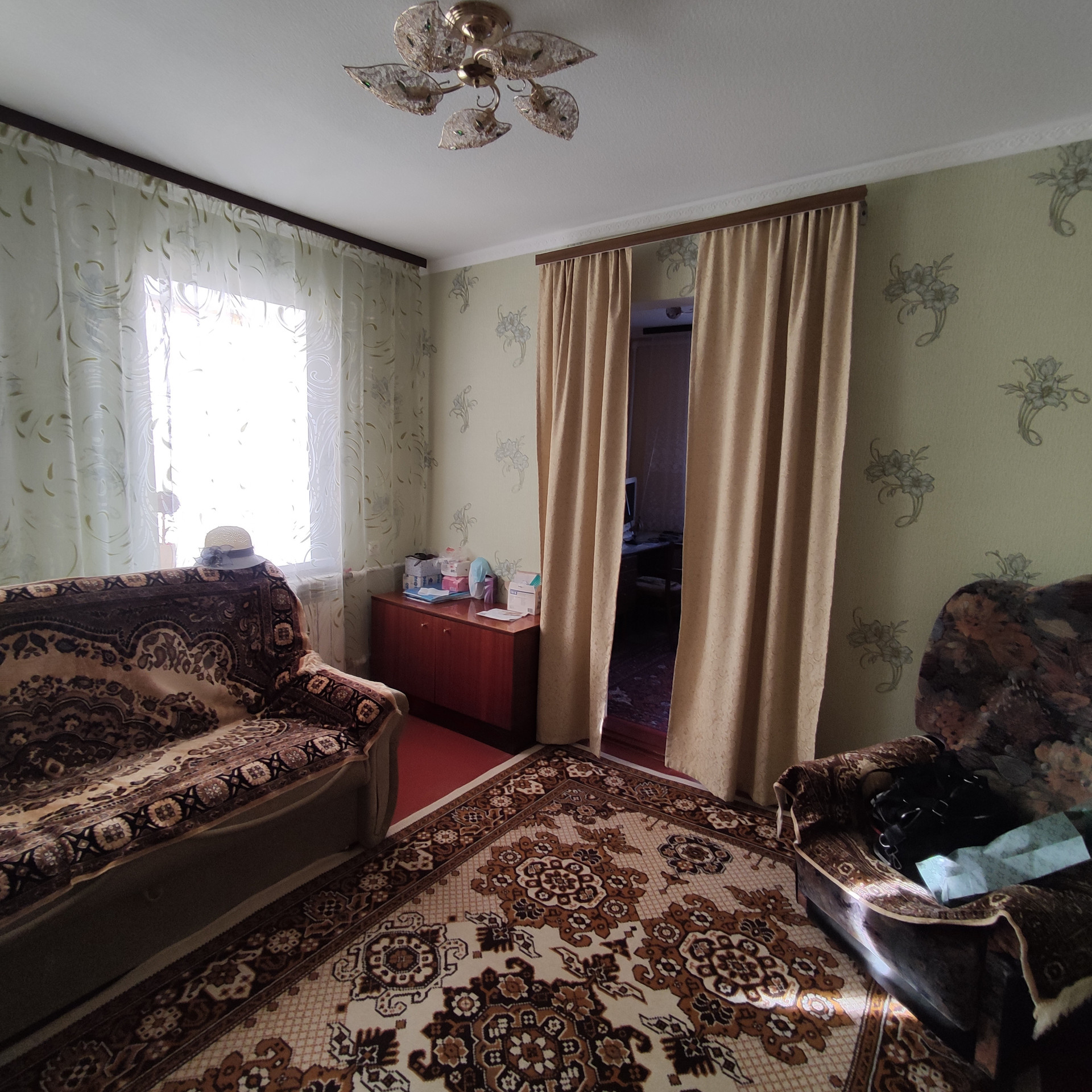 Состояние дома хорошее, высокий потолок, сделан косметический ремонт. Замены окна м/п.