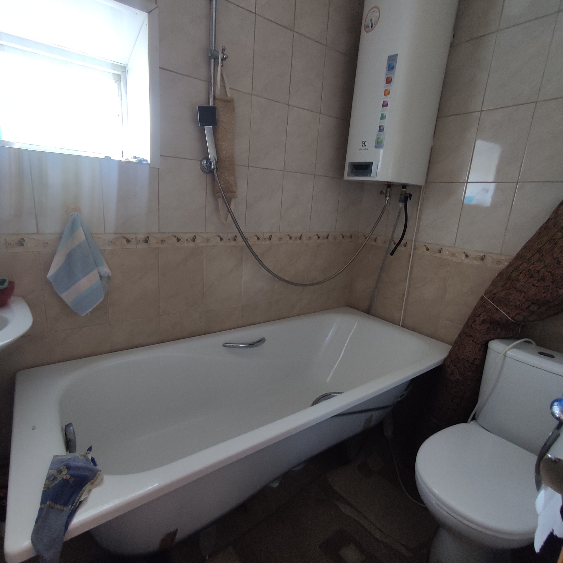 В доме 4 жилых комнаты, кухня, сан. узел, ванная.Стены выложены кафельной плиткой.