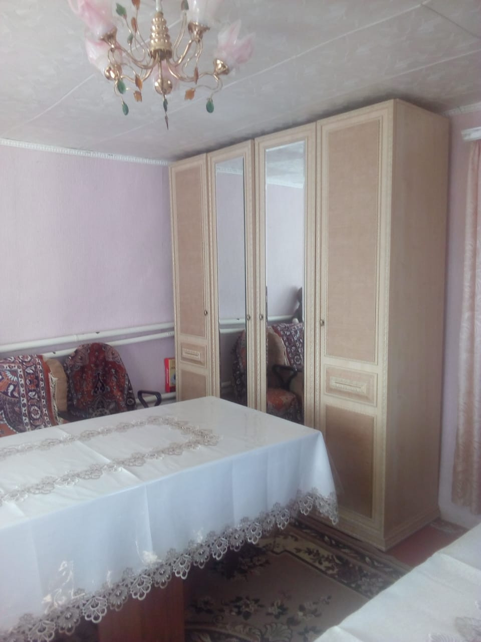 Продаю дом в спокойном районе , чистый воздух. Дом изготовлен из самана заштукатурен. Перед домом большой луг на котором можно пасти крупно и мелко рогатый скот, птиц и др. Огромный огород на котором стоят теплицы. По документам данный участок  18 соток , но по факту  около 50 соток.  Во дворе много сараев, летняя кухня, подвал, на улице сарай для сена.  В данном доме проживают . Проведен новый водопровод,  так же во дворе 2 колодца: один оцинкованный резервуар по землёй для питьевой воды, другой из колец более 10 колец для хозяйственных нужд.