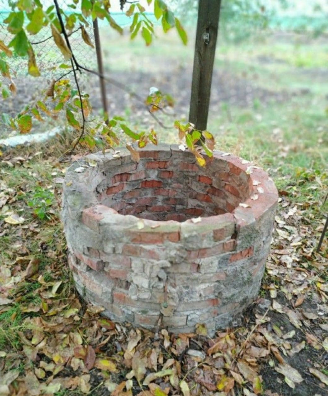 На участке колодец, гараж кирпичный.