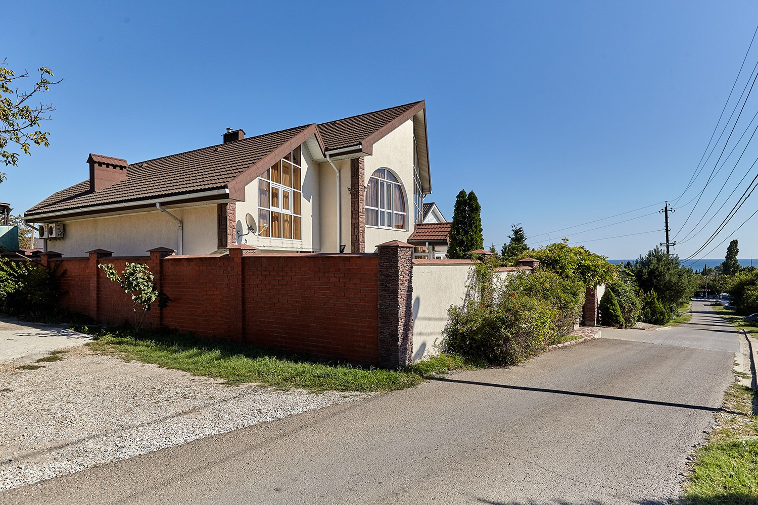 Дом отличает выгодное расположение - на холме при въезде в посёлок, в 400 метрах от моря.