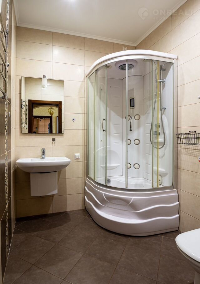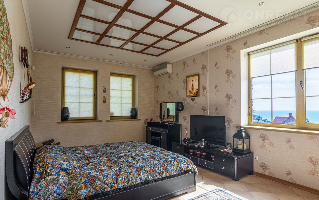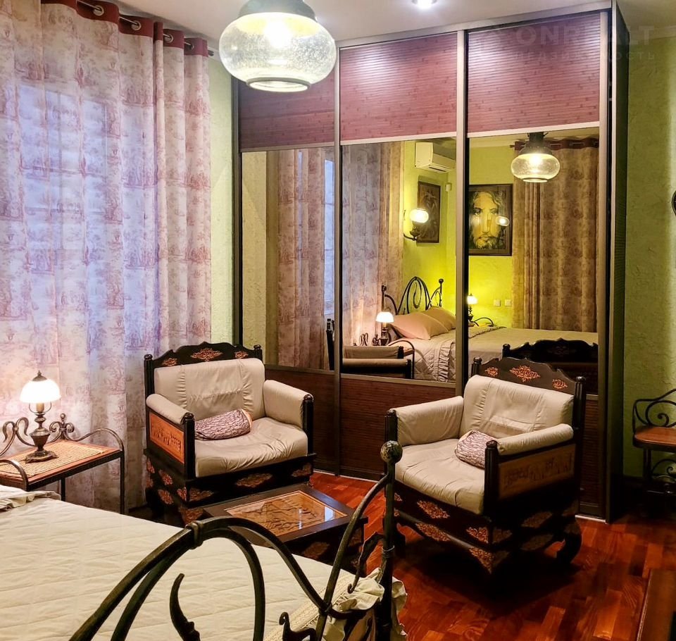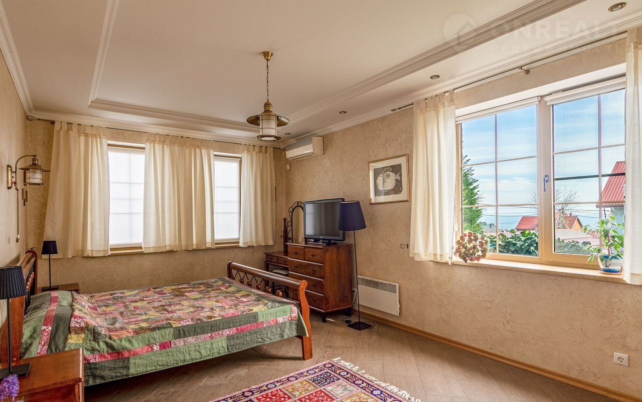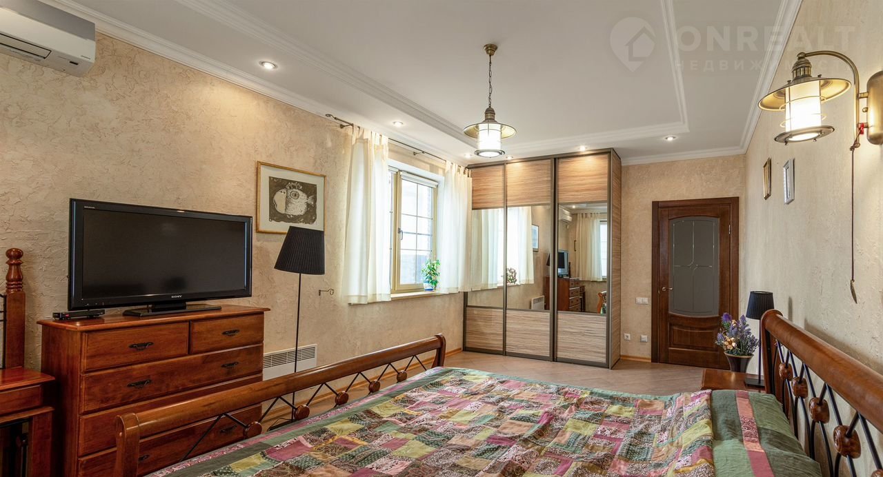 - 1 спальня с большой двуспальной кроватью, прикроватными тубочками, туалетным столиком, платяным шкафом, собственным санузлом с гидромассажной душевой кабиной.