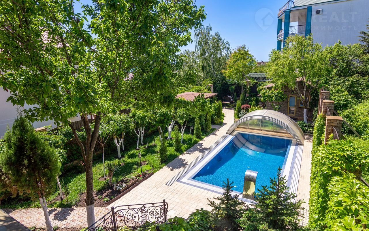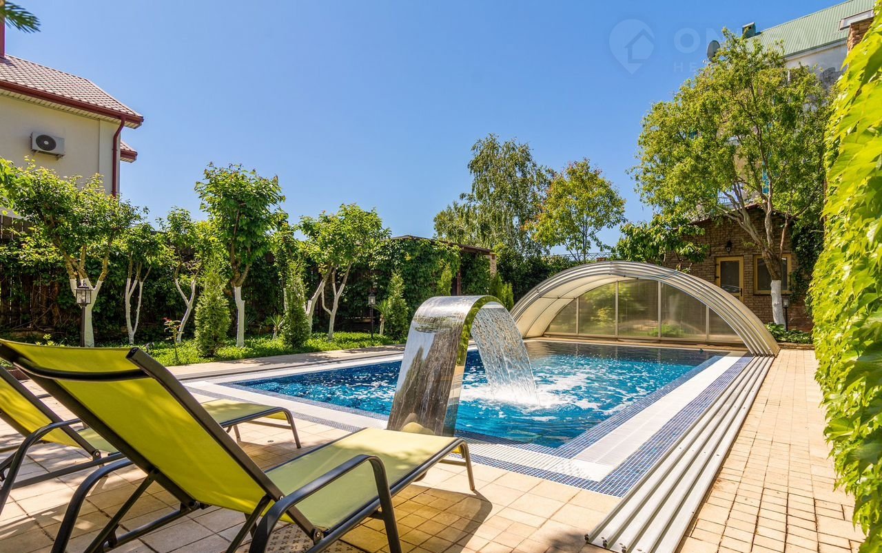 - открытый бассейн (60 м3) 8*4 метра, глубиной от 1 до 2.2 метров, с телескопическим куполом, оборудован водопадом, гидромассажем, гейзером, подсветкой, испанское оборудование. Очистка бассейна происходит с помощью электролитов и круглосуточной циркуляции воды (перелив с чащи), без хлора.