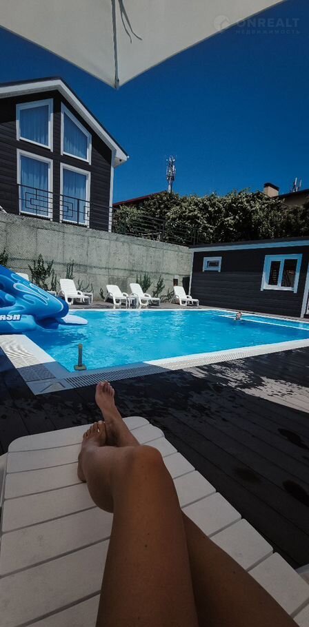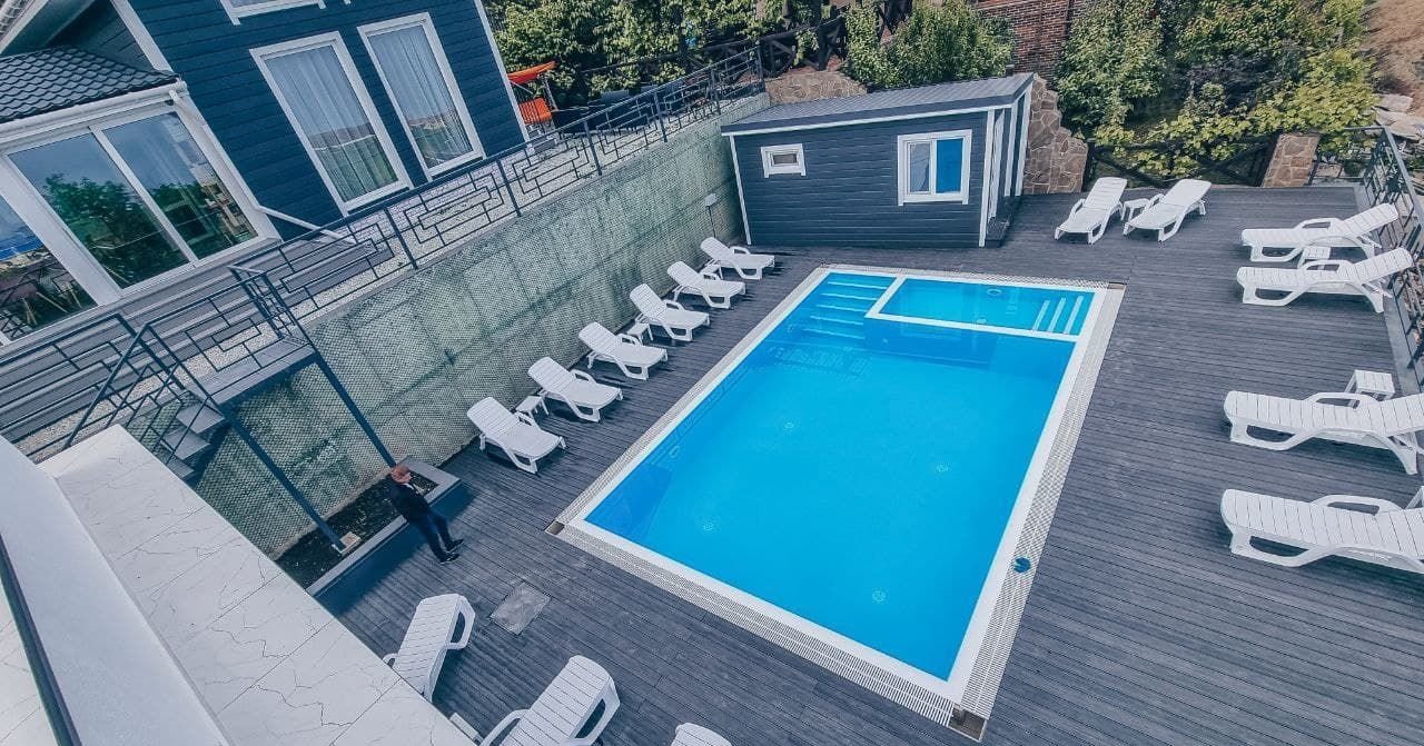 - большой бассейн с подогревом, лежаками и зонтами от солнца,