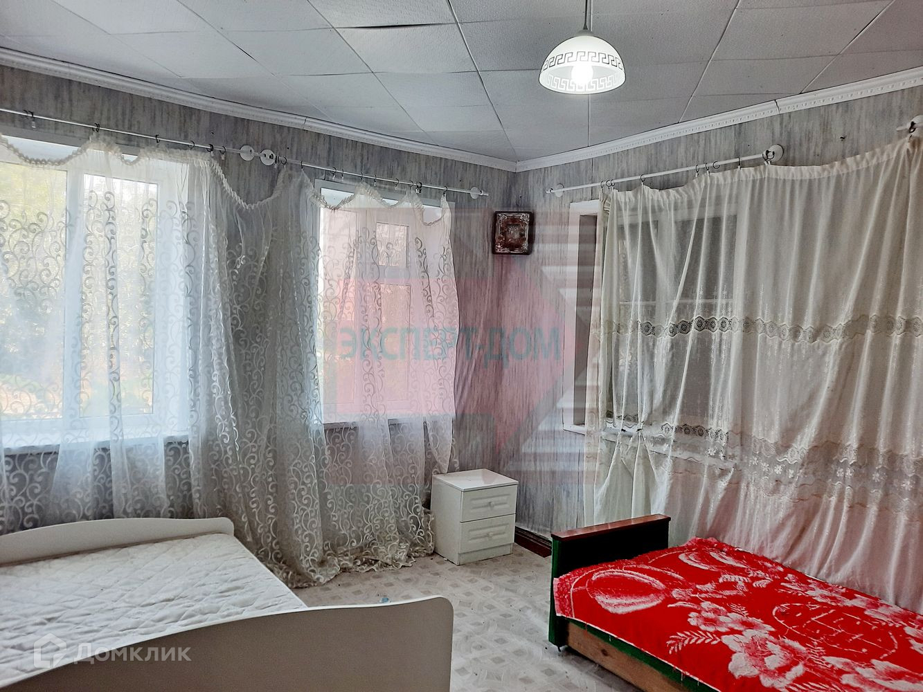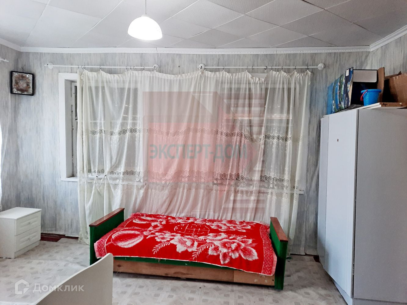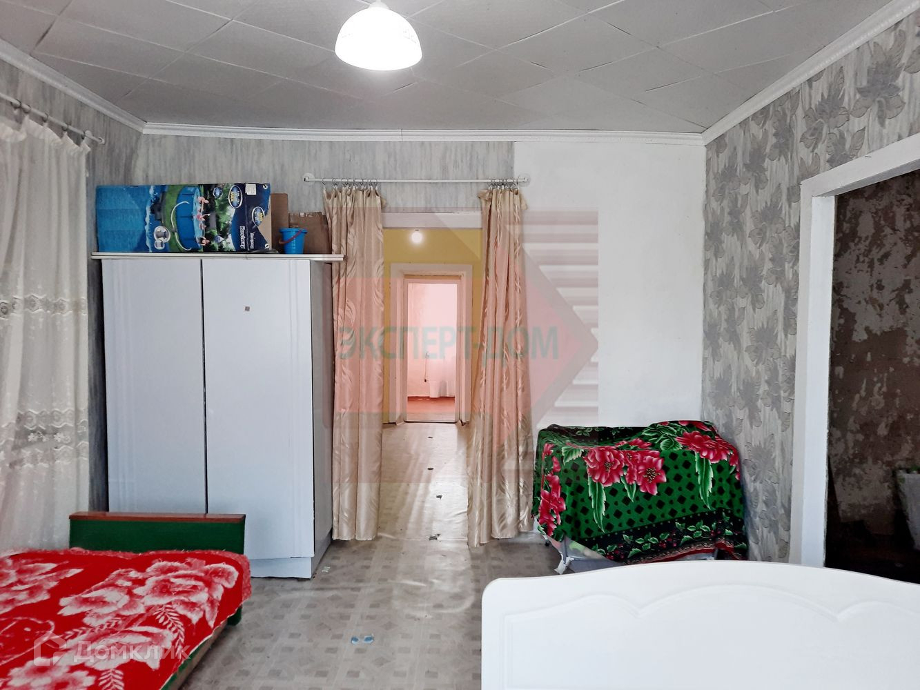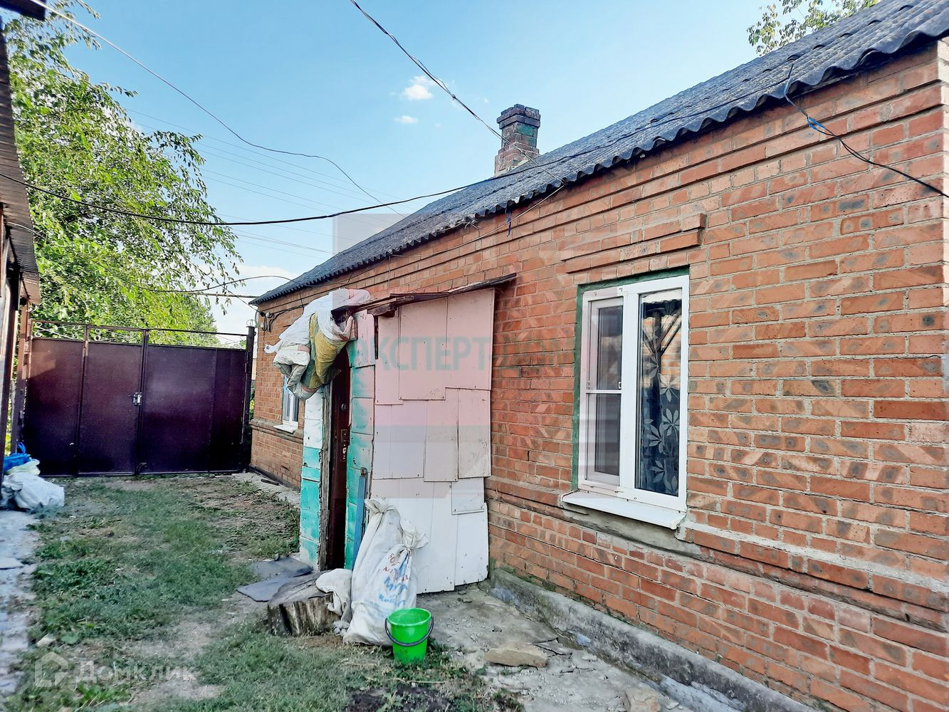 Дом саманный, обложенный кирпичом. Крыша новая, шифер. Окна металлопластиковые. Полы деревянные, частично постелен линолеум. На стенах обои. Потолки высотой 3 м, навесные. Отопление печь.