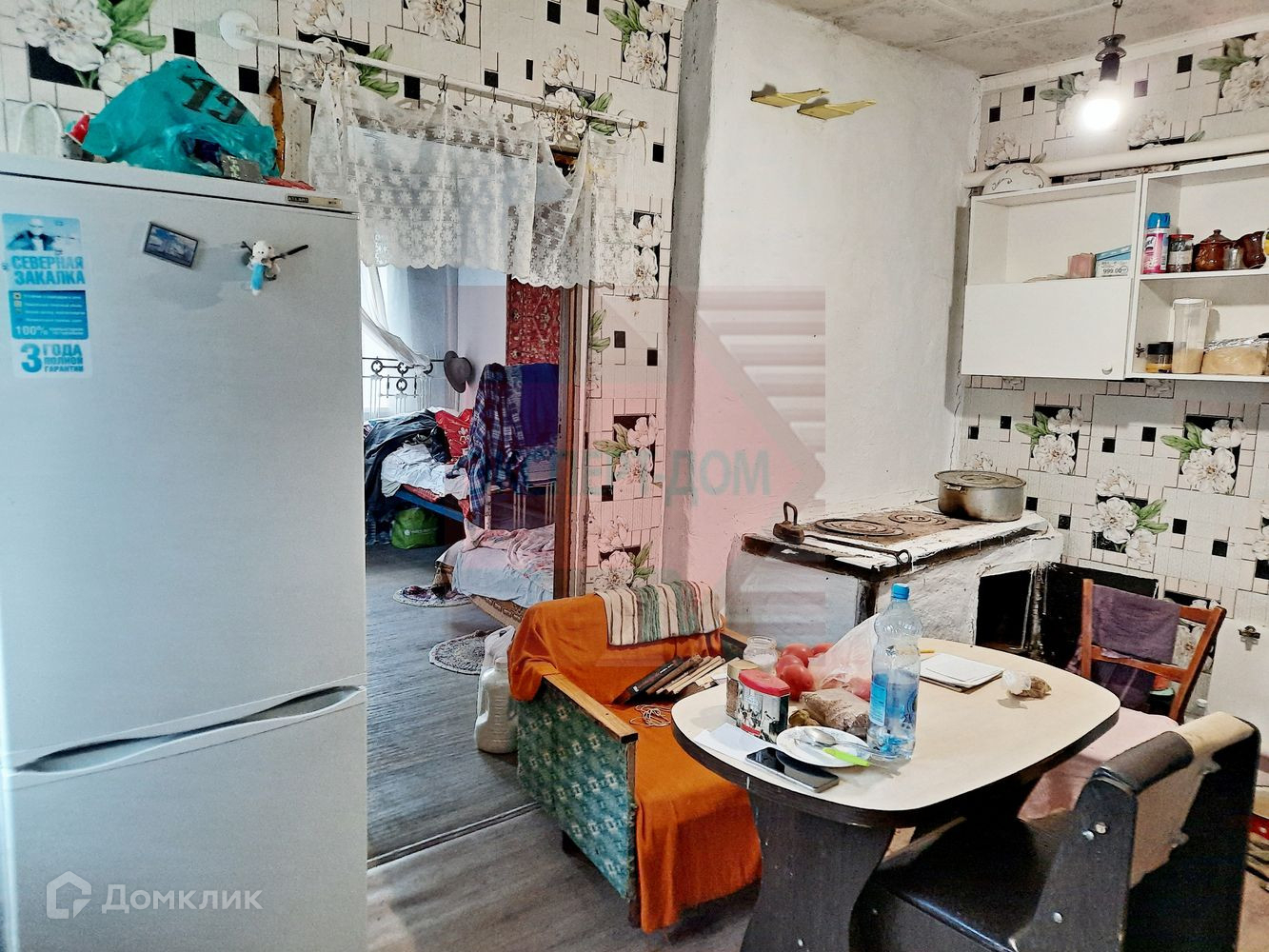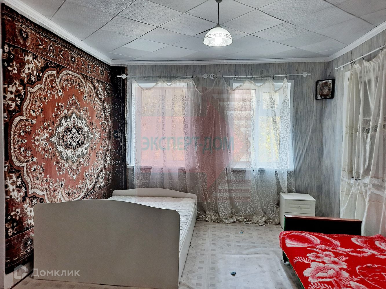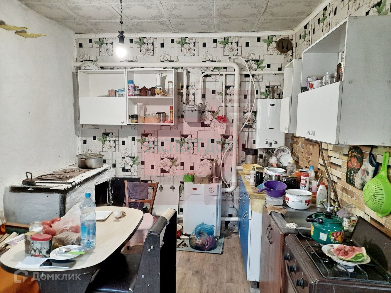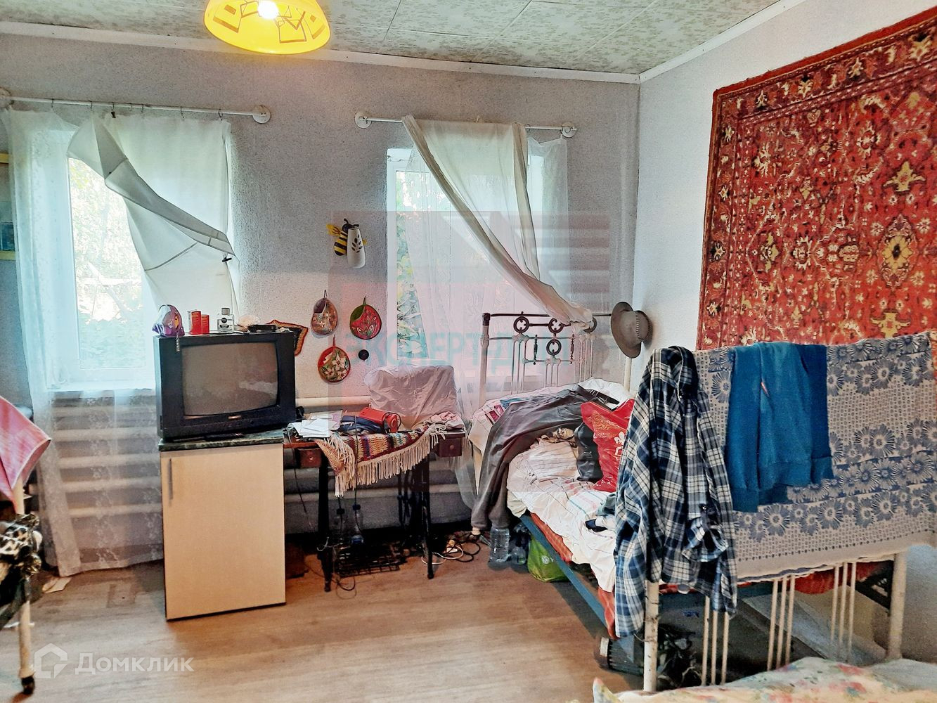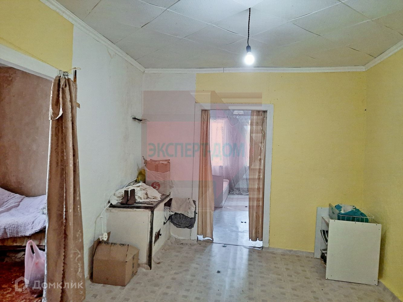 Дом саманный, обложенный кирпичом. Крыша новая, шифер. Окна металлопластиковые. Полы деревянные, частично постелен линолеум. На стенах обои. Потолки высотой 3 м, навесные. Отопление печь.