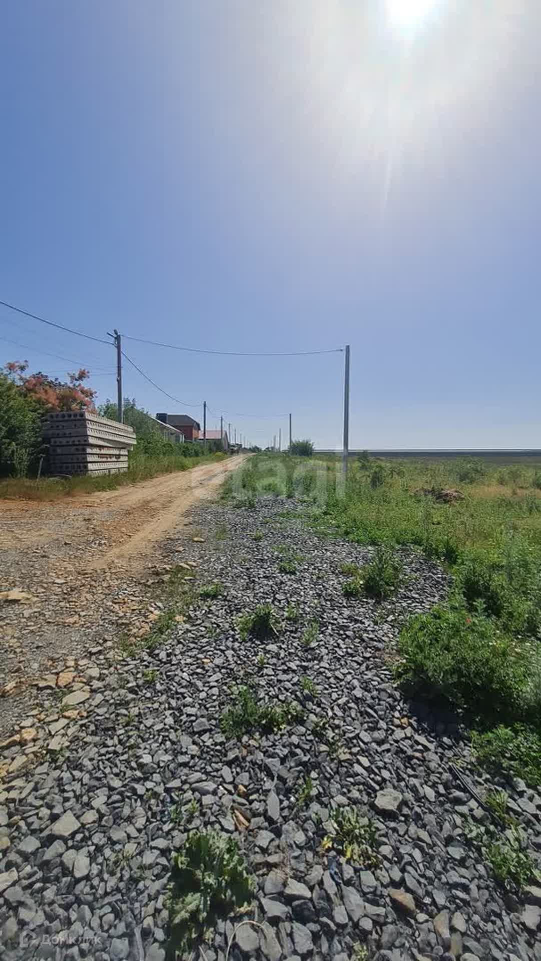 Расположен на высоком месте,вода не стоит. Столбы электричества установлены,газ идет по улице. Вода из скважины.