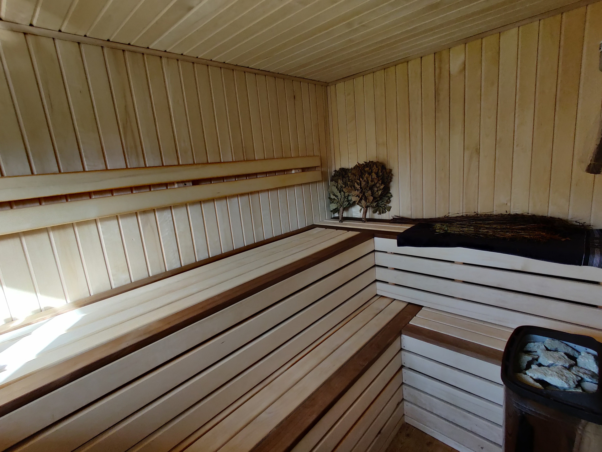 Баня : зона отдыха с кухней и спальным местом, душ, парилка, санузел. Все завершенное, готова к эксплуатации.