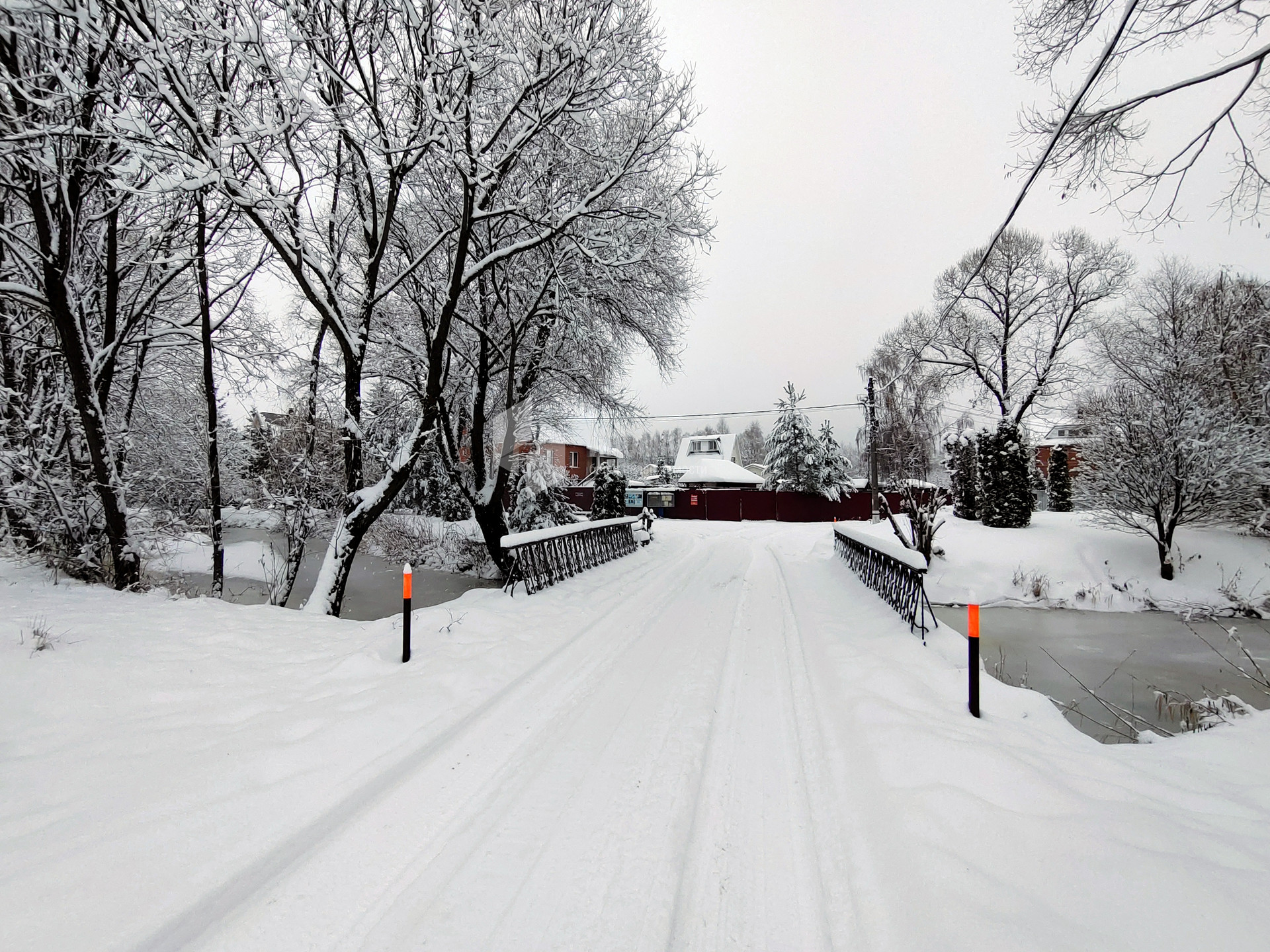 Улица достаточно широкая, что позволяет без проблем в любое время года проезжать до участка. Охраняемый огражденный поселок, автоматические ворота на въезде.