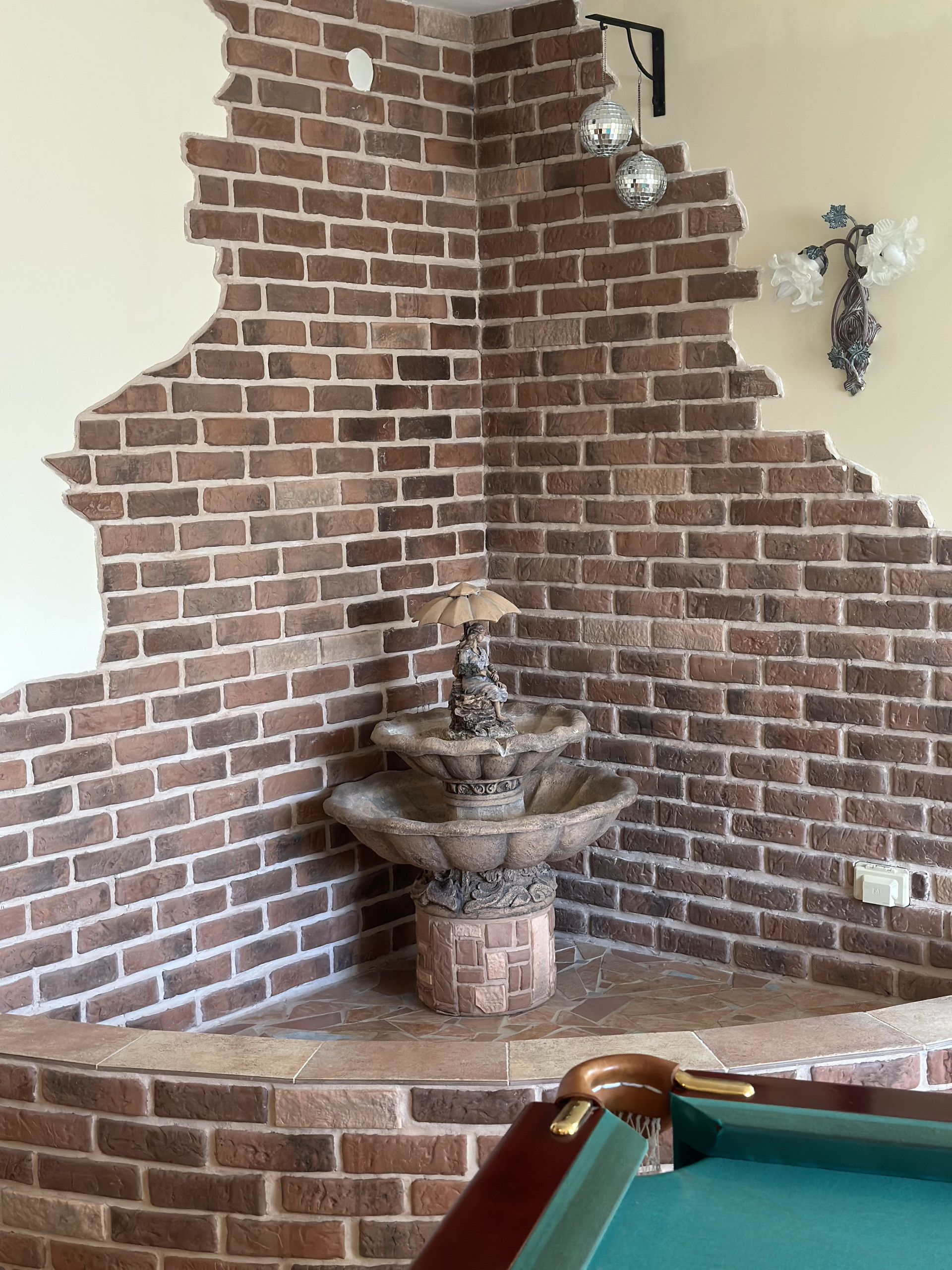 2 этаж : 4 спальни , 2 с/у, гостиная с фонтаном и бильярдным столом .