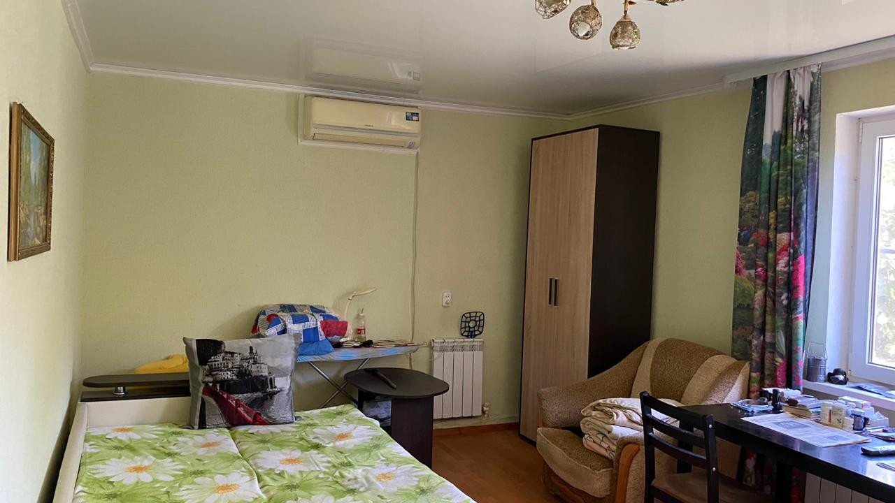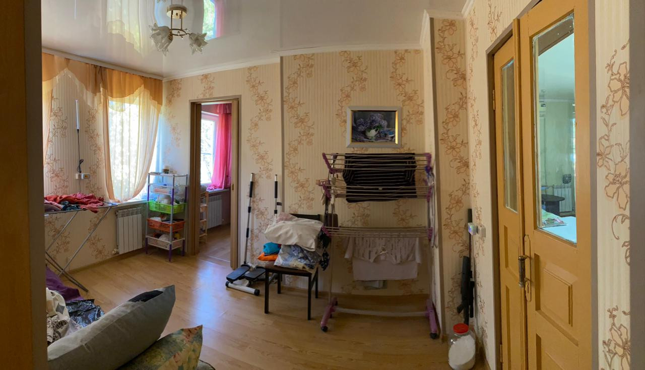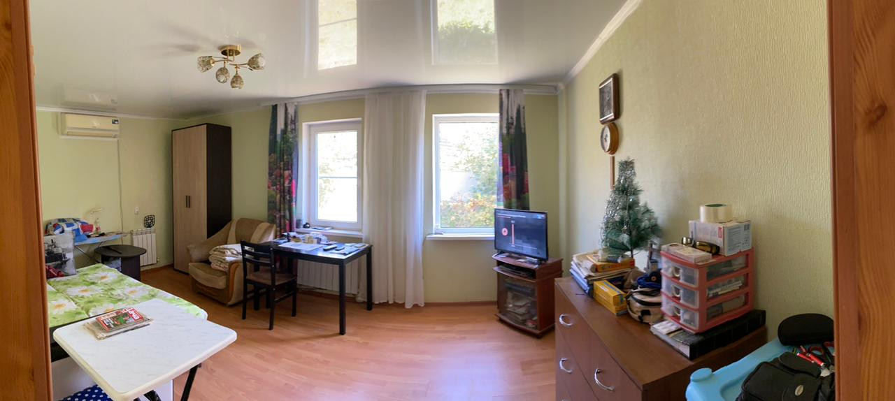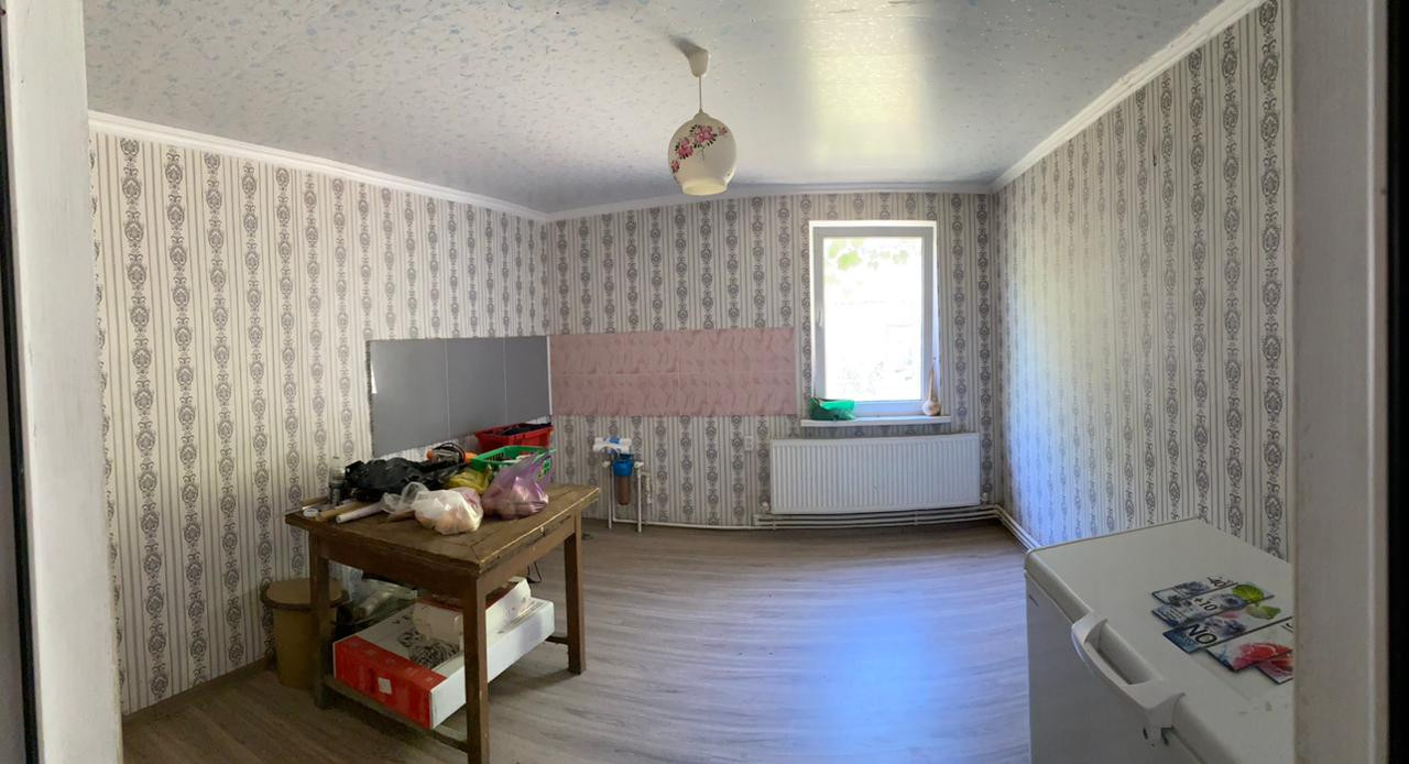Крыша металло-профиль зеленый, стеклопакеты, натяжные потолки, гипсокартон, стены-обои, кафель, полы- ламинат, керамогранит.