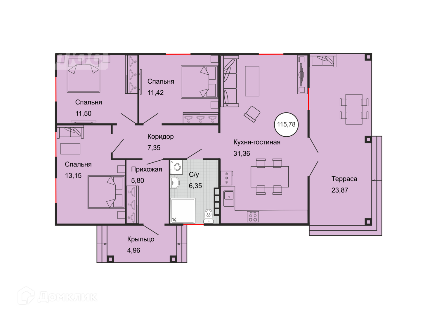 Общая площадь 117 м2