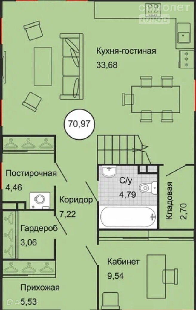 Площадь кухни 33.6 м2