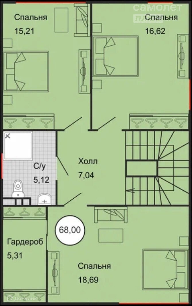 Жилая площадь 65.4 м2