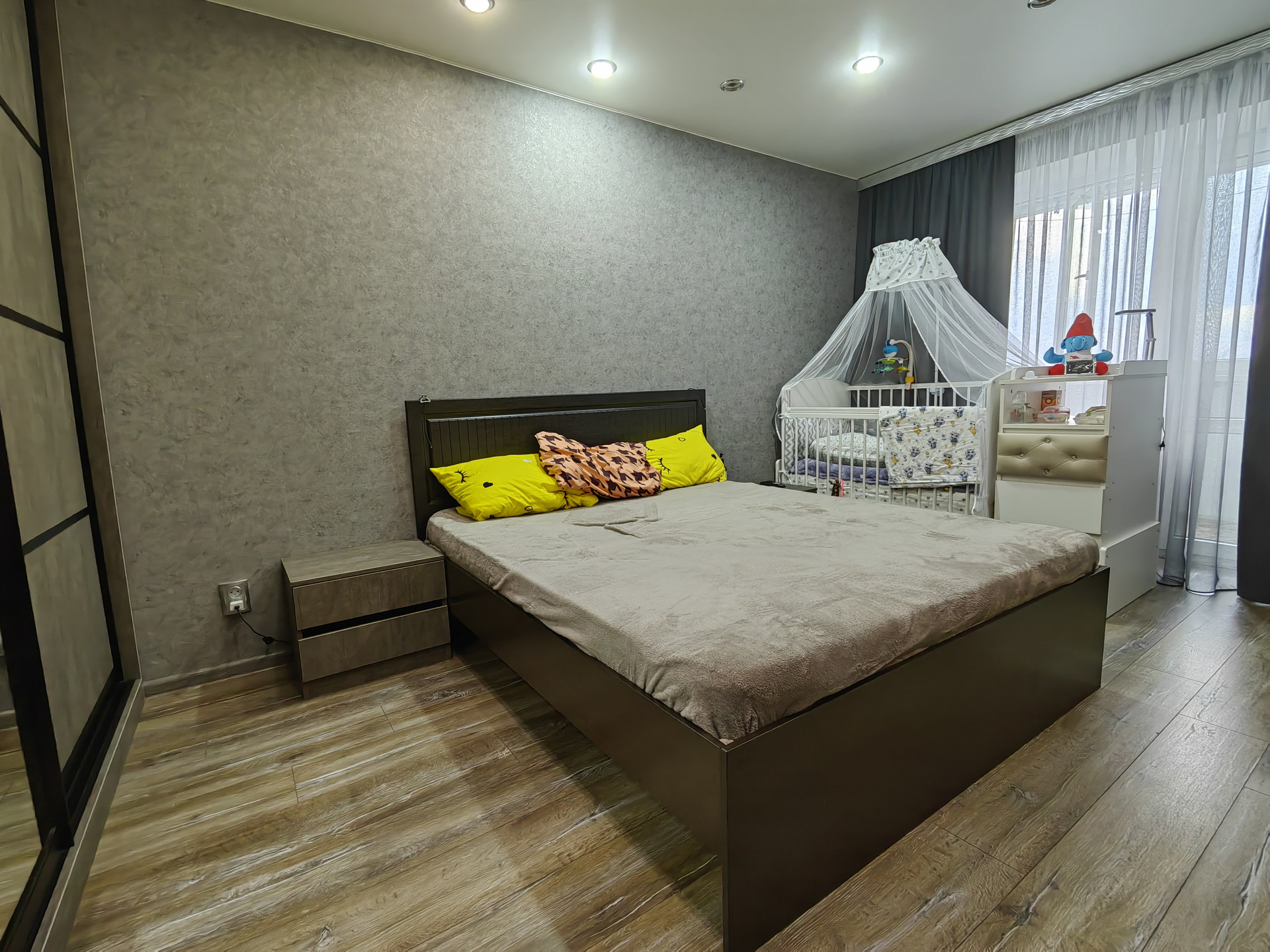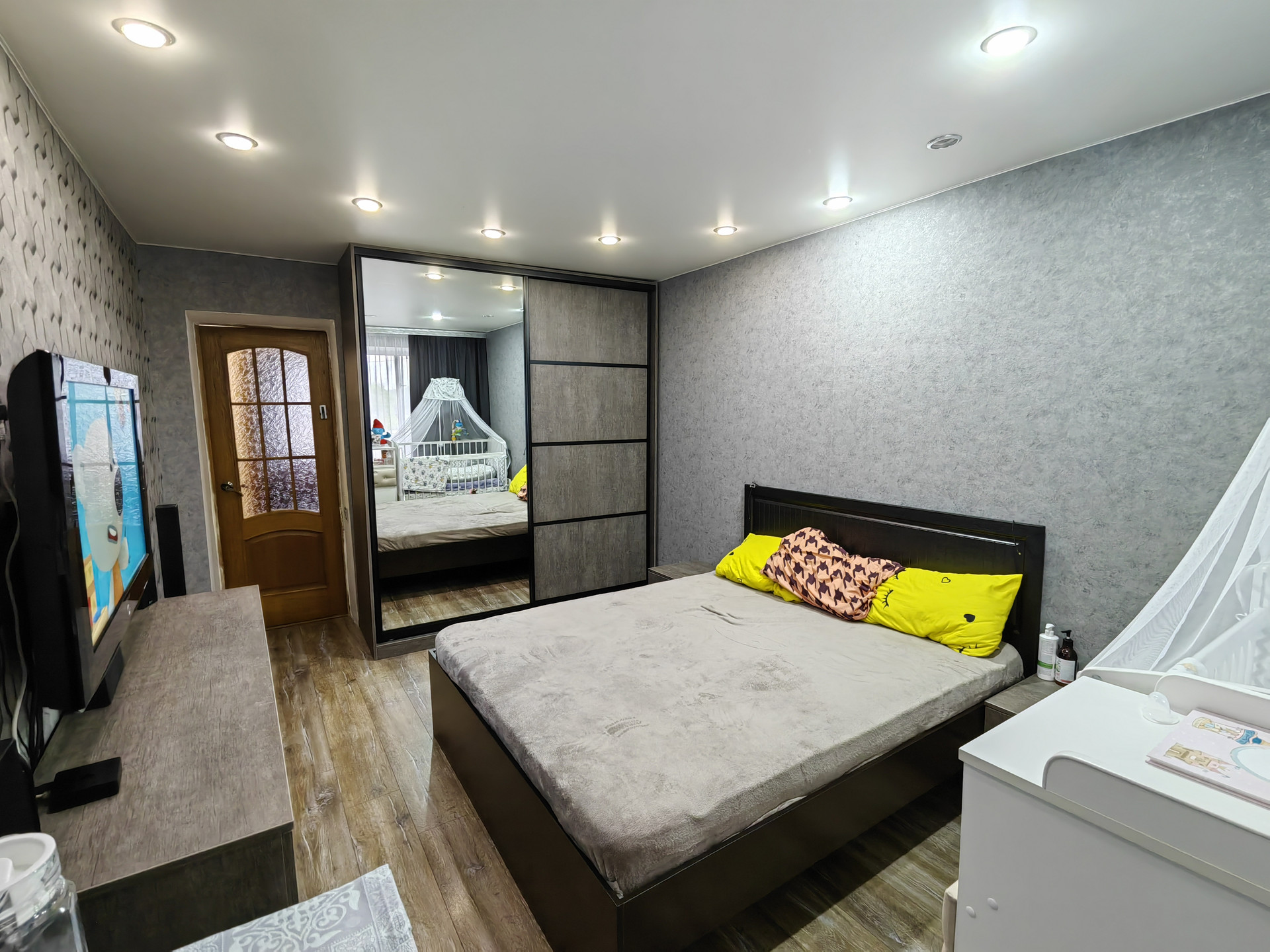 Хорошее жилое состояние, окна ПВХ, заменена проводка, трубы, натяжные потолки, ламинат.