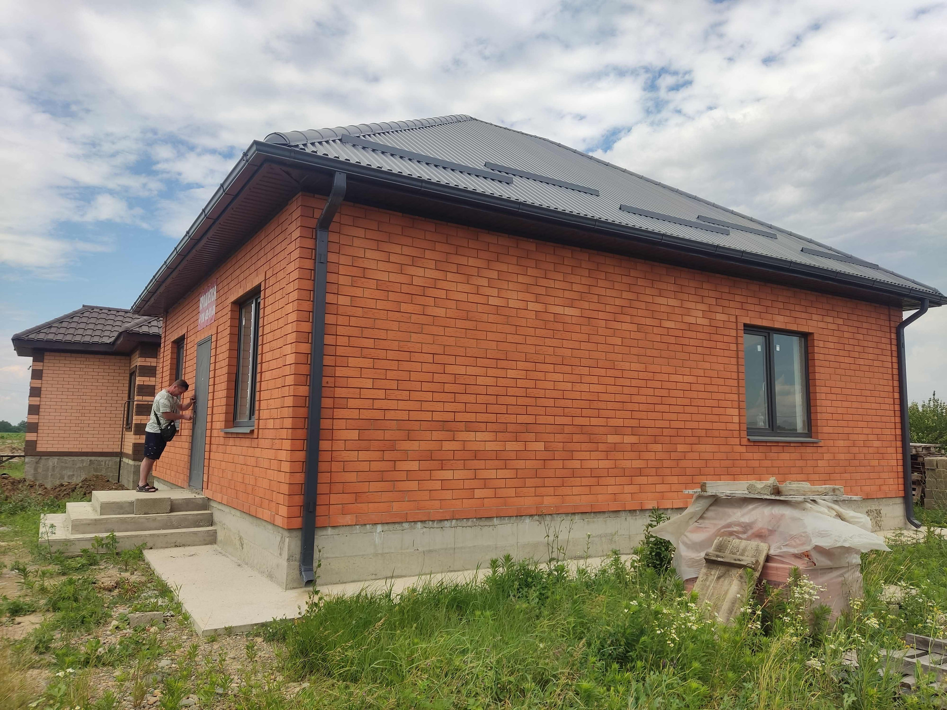 Новый, качественной постройки дом, из блока+кирпич, из трёх изолированных спален кухня, гостиная, с.у. совмещён, котельная. Насос для подачи воды вне дома, утеплен. Ведутся отделочные работы Под Ключ.