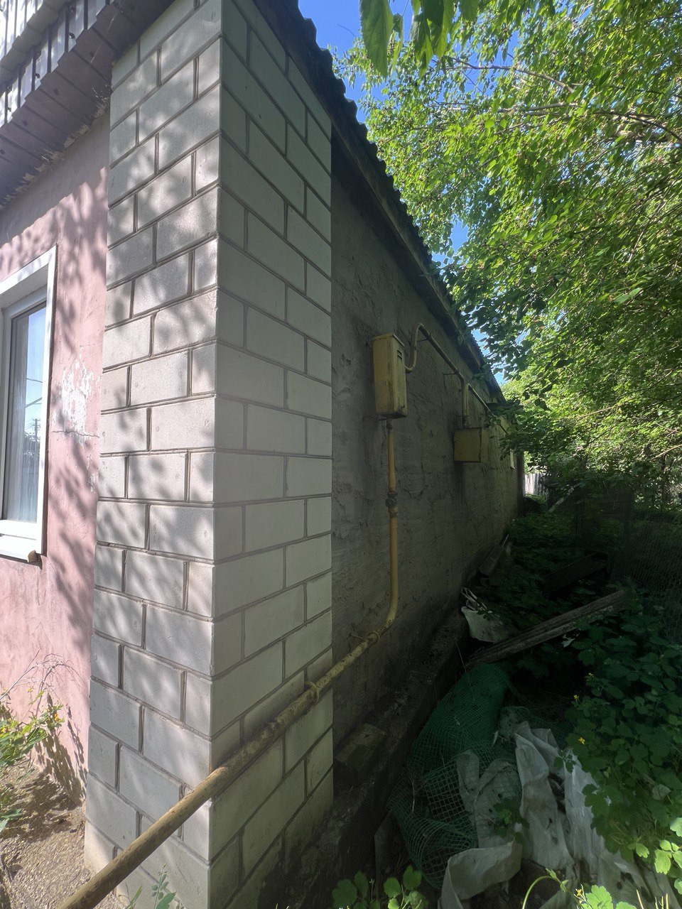 Материал стен:саманный кирпич, отштукатурено и окрашено; во всем доме установлены металлопластиковые окна, отопление газовый камин, на все имеются счетчики.