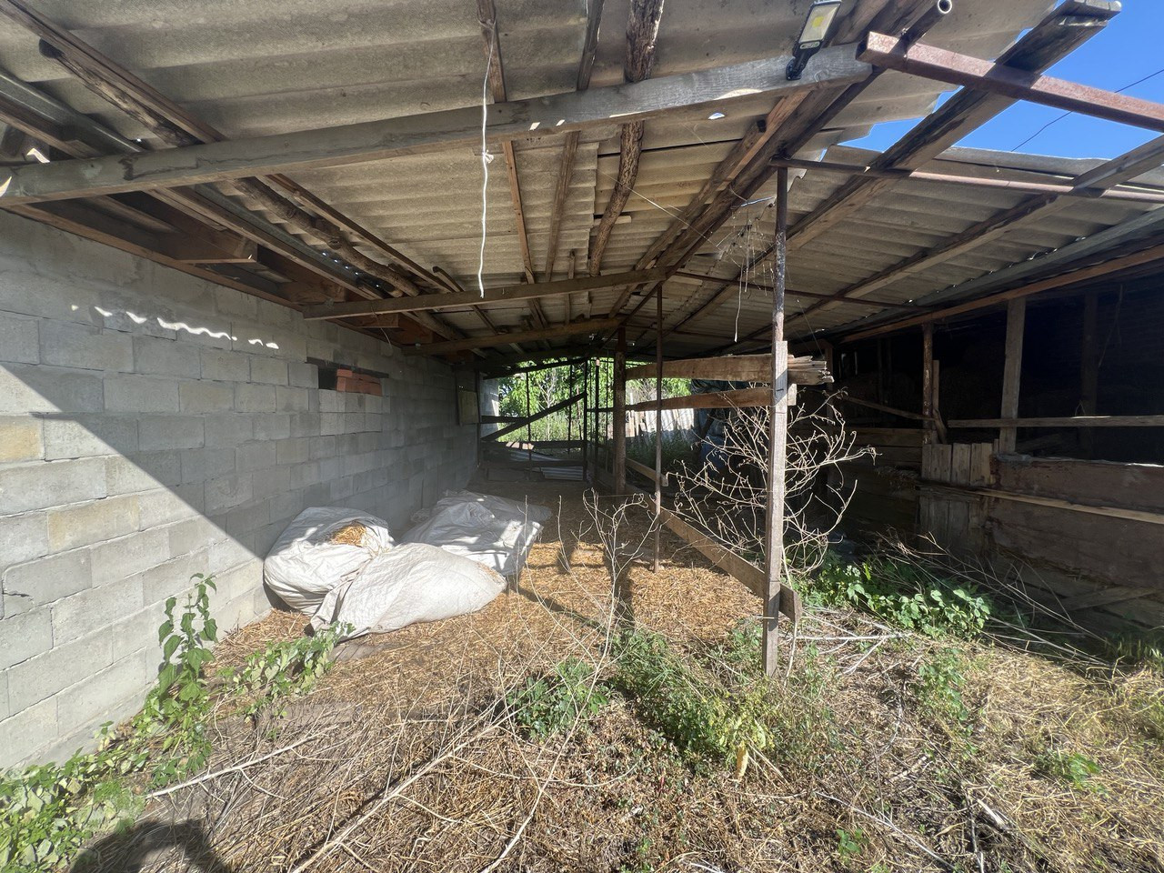 Во дворе есть навес, уличный туалет, хоз.постройки, коровник, сарай, канализация-септик, плодовые деревья, а так же имеется большой огород с выходом к реке.