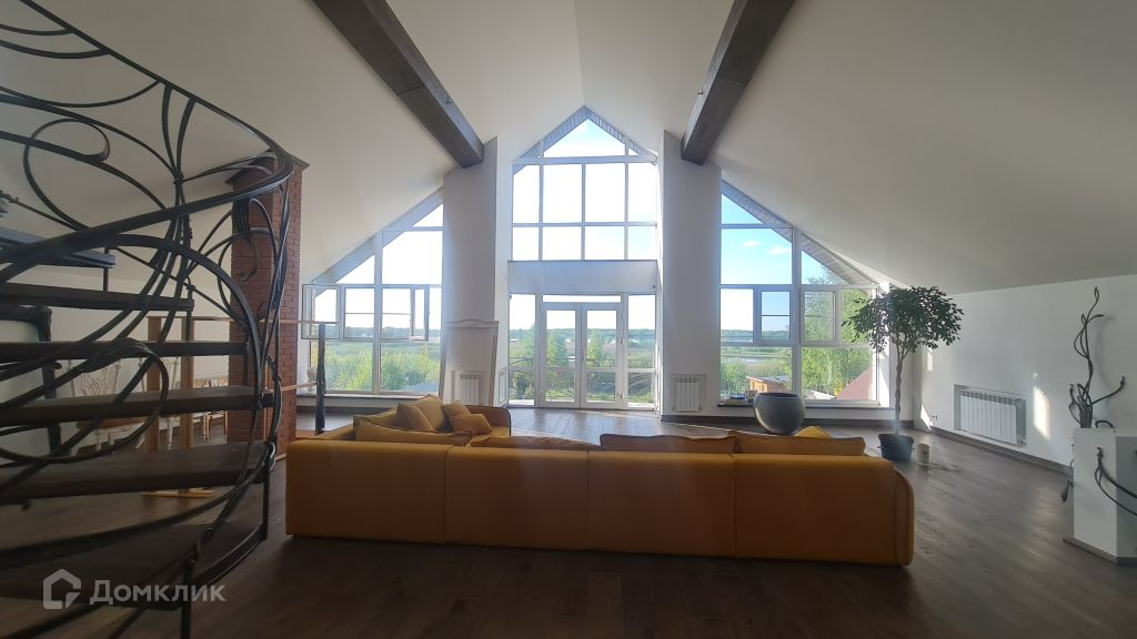 Коттедж построен по индивидуальному проекту с панорамными окнами с красивым видом на реку Волгу.