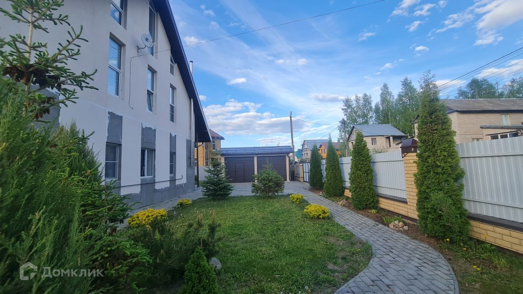 Территория вокруг дома огорожена, автоматические ворота. На территории 2 гаража, баня, насаждения, теплица.