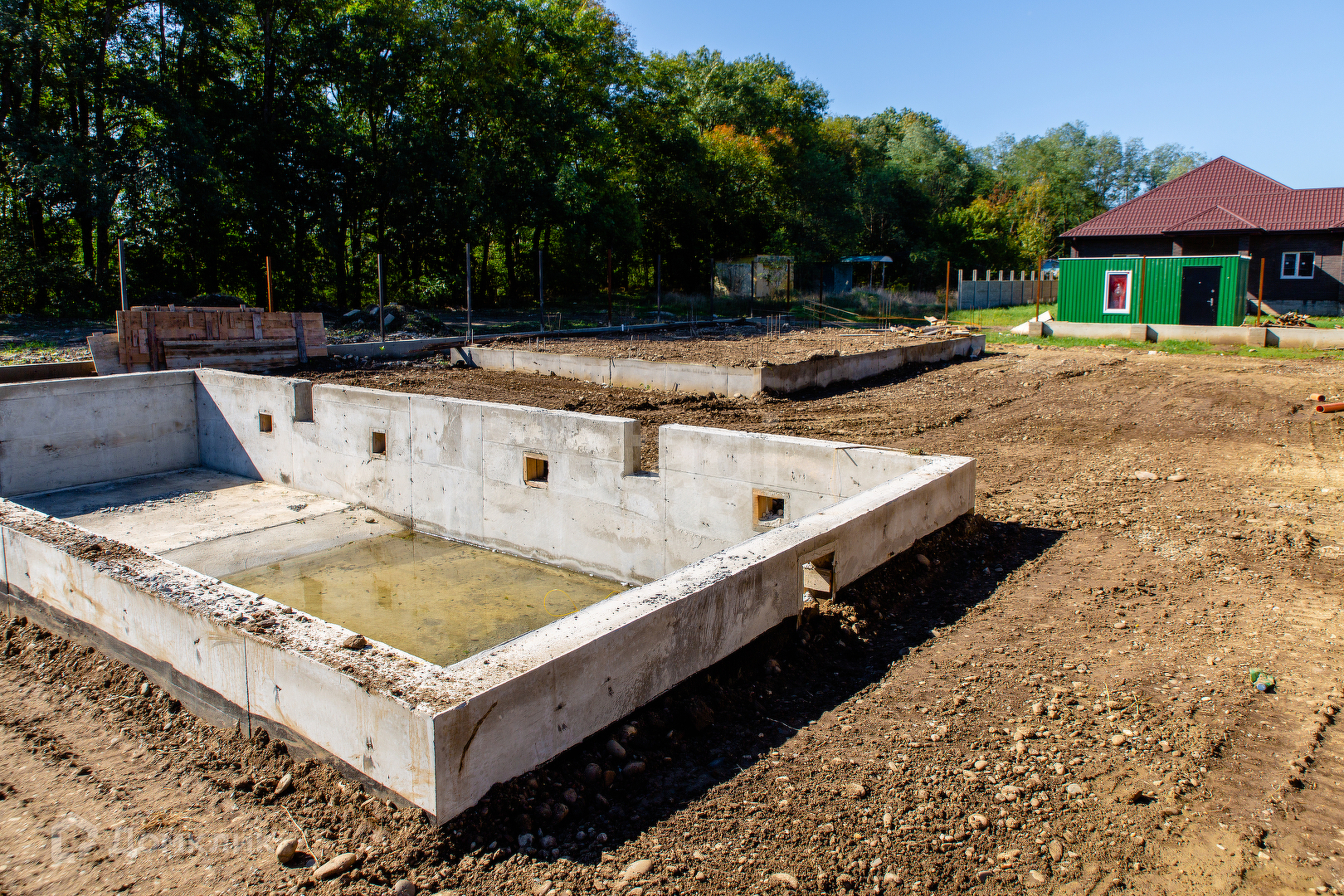 По периметру участка залит фундамент под забор.
