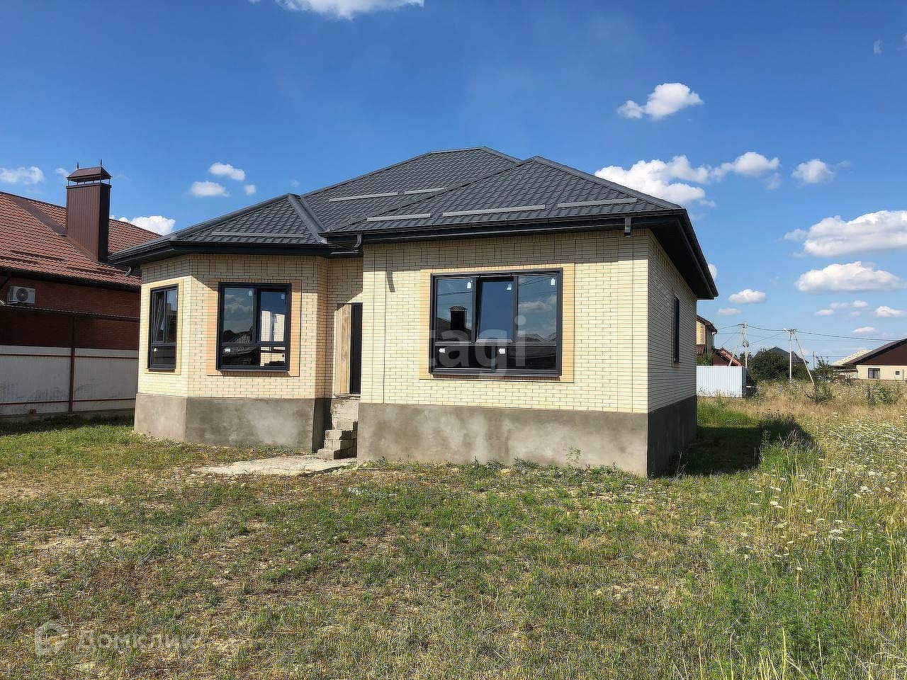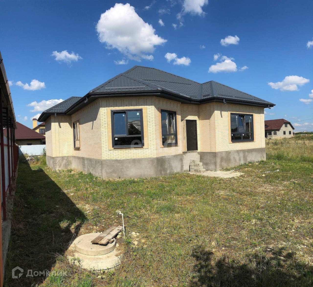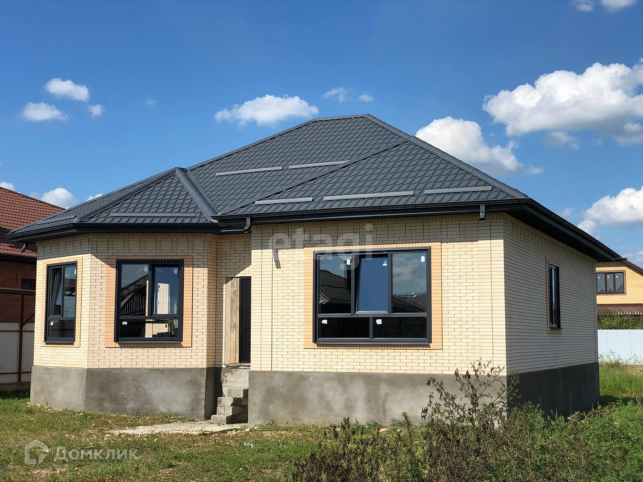 На участке свет, газ, вода. Участок 7,4 сотки, в собственности, дом 140 кв.м. 3 спальни, хол, зал, кухня/столовая, бойлерная (котельная), 2 сан.узла. С кухни выход на террасу. В плите заложены закладные, для врезки конструкции террасы. Капитальный ленточный фундамент. В землю залито 60 см бетона М250, каркас ленты из 14-ой арматуры. Цоколь вытянут на 1 м. 20 см. Мощная плита, 2 ряда сетки из арматуры. Весь вложенный материал качественный и не дешевый. Облицован одинарным (ПОЛНОЦЕННЫМ) Маркинским кирпичом 250/120/65. Толщина черепицы 0,5. Установлены ЭНЕРГОСБЕРЕГАЮЩИЕ окна (с ламинацией под цвет кровли - темный графит) премиального сегмента: пятикамерный профиль - 70 мм, стеклопакет 32 мм, немецкая фурнитура. Потолок подшит, установлены подоконники, стоит временная дверь (на период черновых работ). Объявленная цена - за покупку в таком состоянии. Дом на стадии доработки и строительства, существенно начальная цена на сегодняшний день, в дальнейшем цена будет увеличиваться.