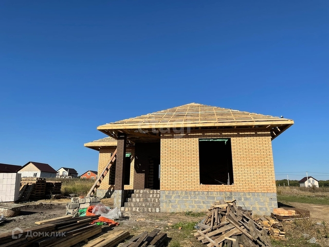 О ДОМЕ. Сделан из газосиликатных блоков Аэробел, облицовка - кирпич. Крыша - мягкая кровля. Откосы, водоотливы. Окна с ламинацией, в гостиной и большой спальне окна широкие (в пол). На данный момент ведутся отделочные работы. Ремонт ПОД КЛЮЧ (натяжные потолки, ламинат в комнатах, плитка в гостиной/коридоре). Планировка 3 отдельные спальни (12-15-20 м2) и отдельная большая кухня-гостиная. ГАЗ, СВЕТ, СЕПТИК, ВОДА все коммуникации.