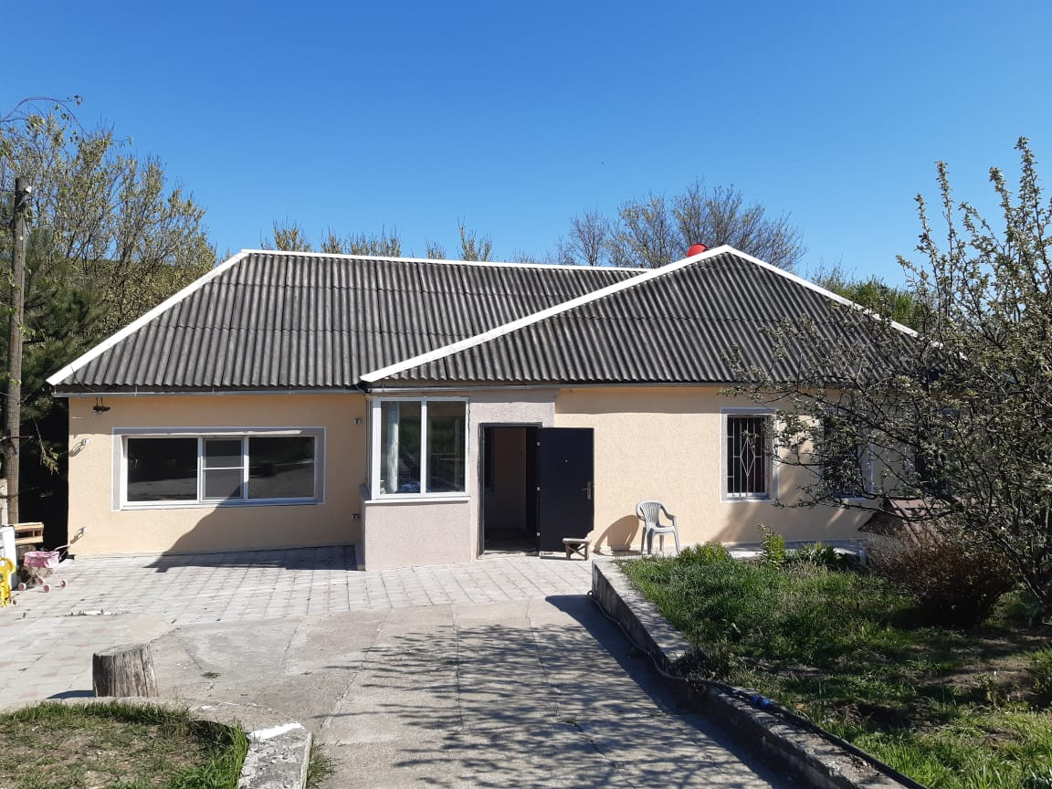 Продам 1-эт дом в х.Горном г.Новороссийска Краснодарского края (Приморский район). Находится в живописном месте, горном районе. Неподалеку есть речка, лес, горный массив, церковь Феодосия Кавказского. В хуторе имеется два продовольственных магазина, хоз. магазин, администрация, почта. Три раза в день в город и обратно (через пос.Верхнебаканский) ходит маршрутный автобус 104 (20 км - около 30-40 мин). В пос.Верхнебаканском находятся: ясли, детский садик, школа, магазины. Из х.Горного в школу (пос.Верхнебаканский) детей отвозит и привозит школьный автобус. В х.Горном  имеется остановка ж\д транспорта (электрички, проходящие поезда). Дом 2004 года постройки. Построен из керамзитобетонных блоков, утеплен, крыша - шифер, МПО, ламинат-плитка, 98.9 кв.м. В доме 3 комнаты (22, 24, 25 кв.м.) и кухня (12 кв.м.), с\у в доме совмещенный (6 кв.м.). Состояние жилое (требуется косметический ремонт). Имеется эл. плита, частично мебель. Отопление - электрический котел (счетчик двухзонный: день-ночь, тариф - сельский). Вода круглосуточно и холодная и горячая (скважина и бойлер), вода хорошего качества. Имеется придомовая территория. Гараж, Есть сад с плодовыми деревьями и кустарниками. Подходит по ипотеку (военная, сельская).