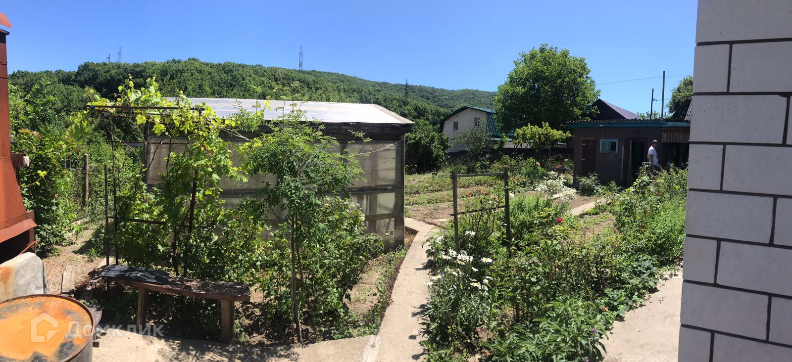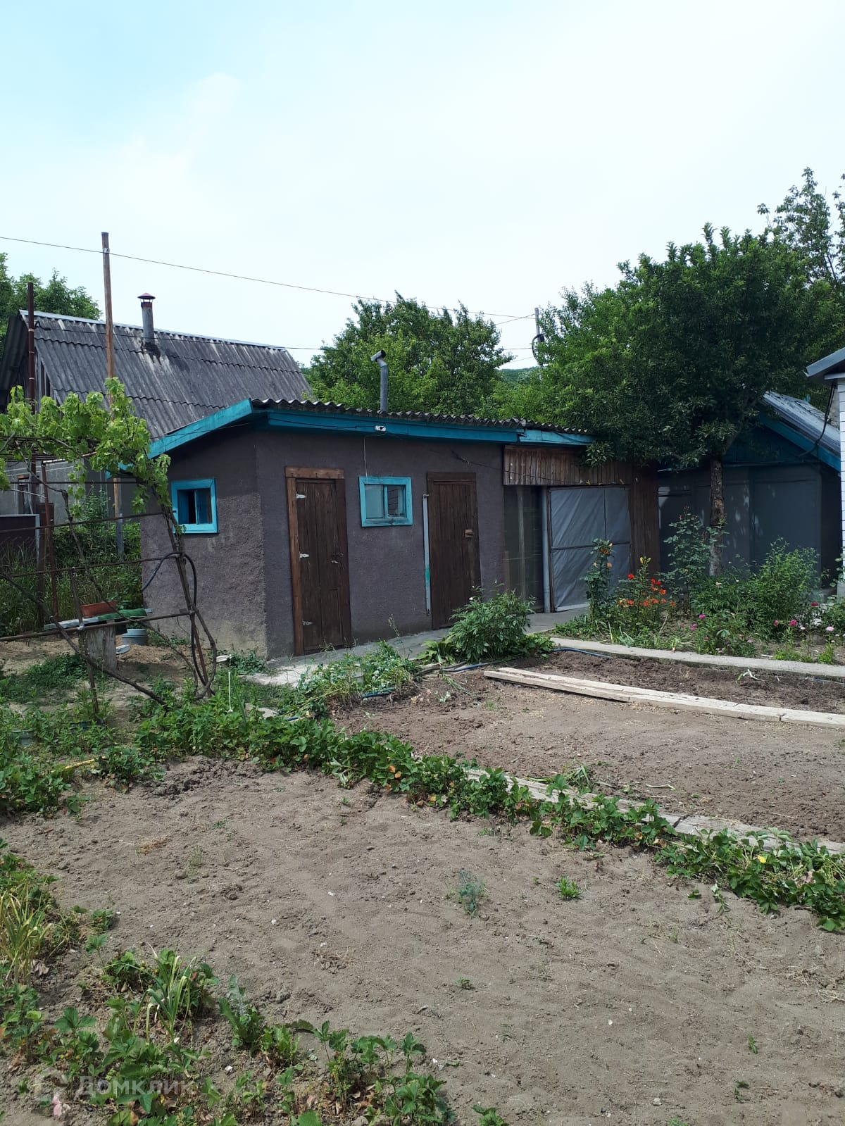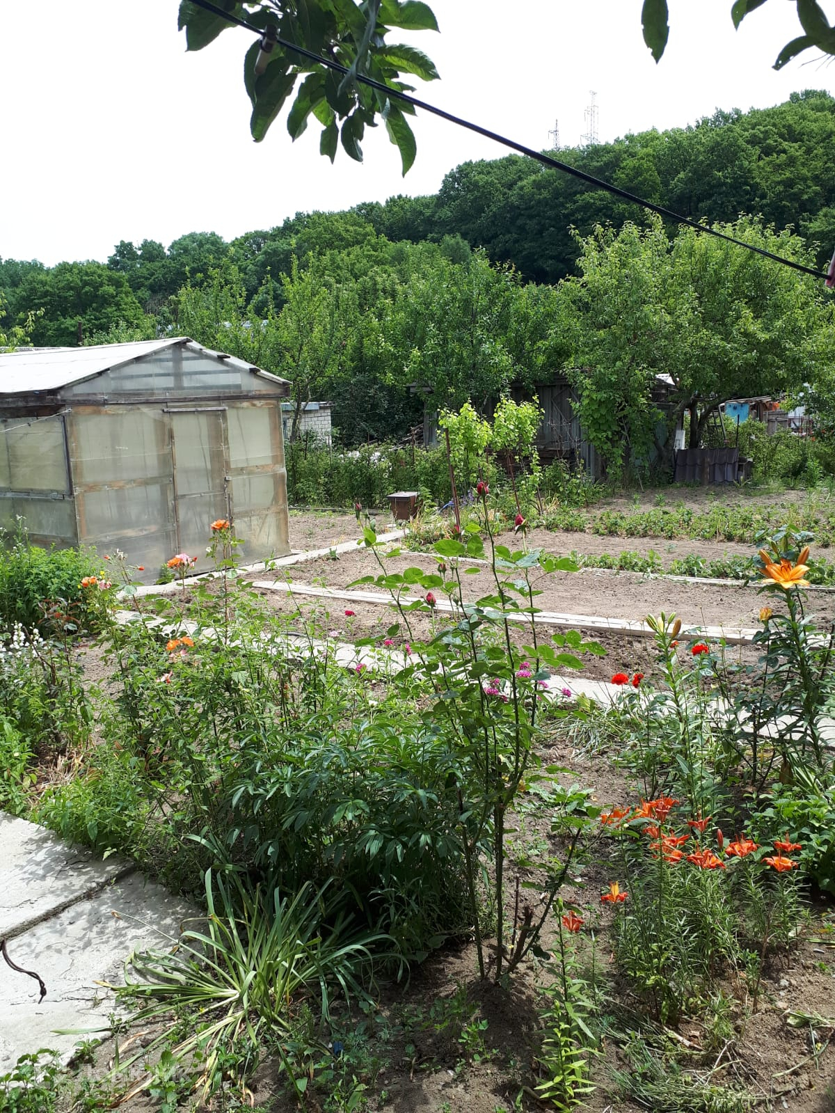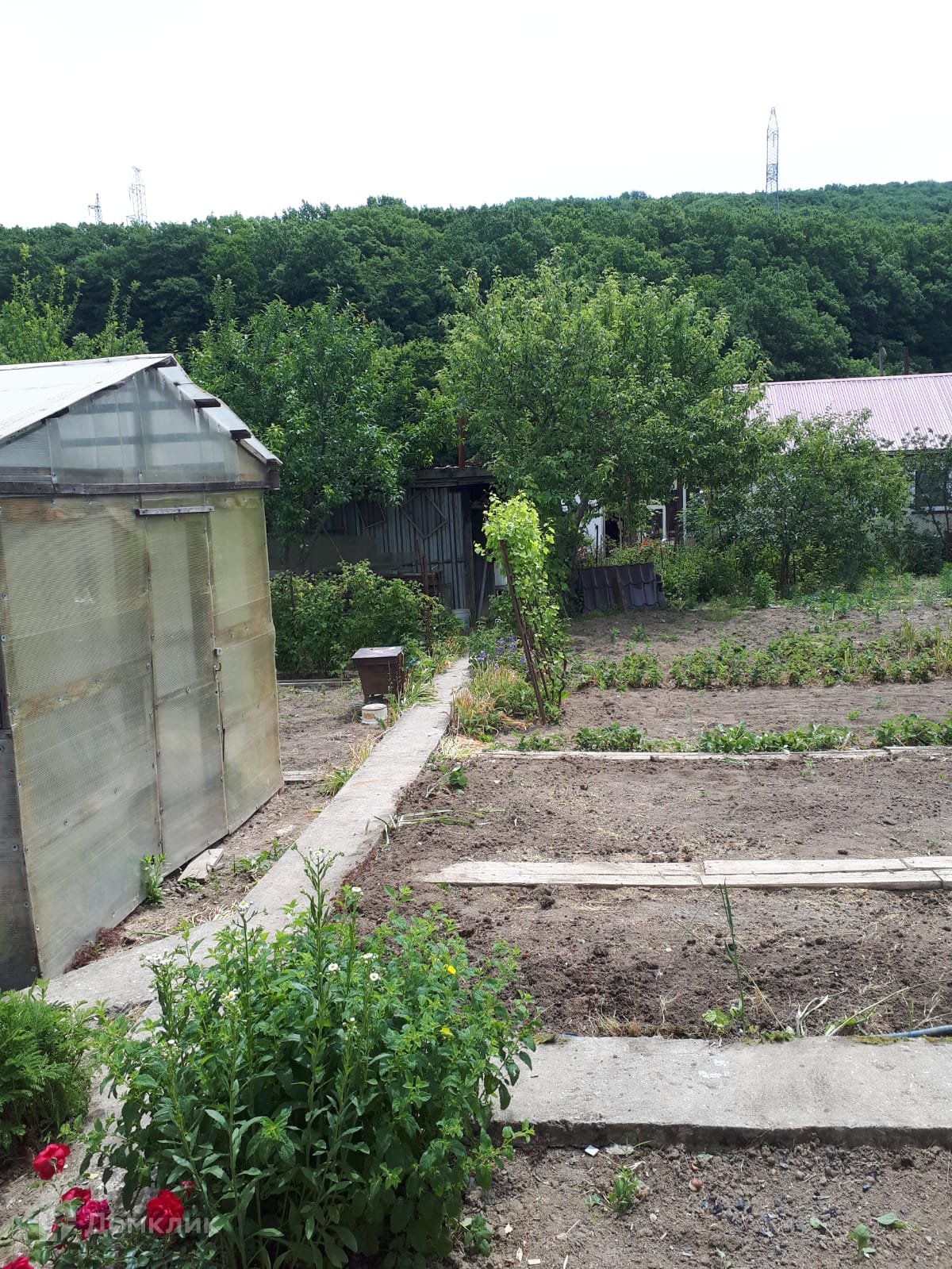 Участок 5,4 сотки. На участке есть плодовые деревья и кустарники: яблони, сливы, малина, крыжовник, черная и красная смородина, виноград черный и зеленый, клубника, 1 большая теплица. А также баня и душ, также есть хозпостройки, летняя кухня.