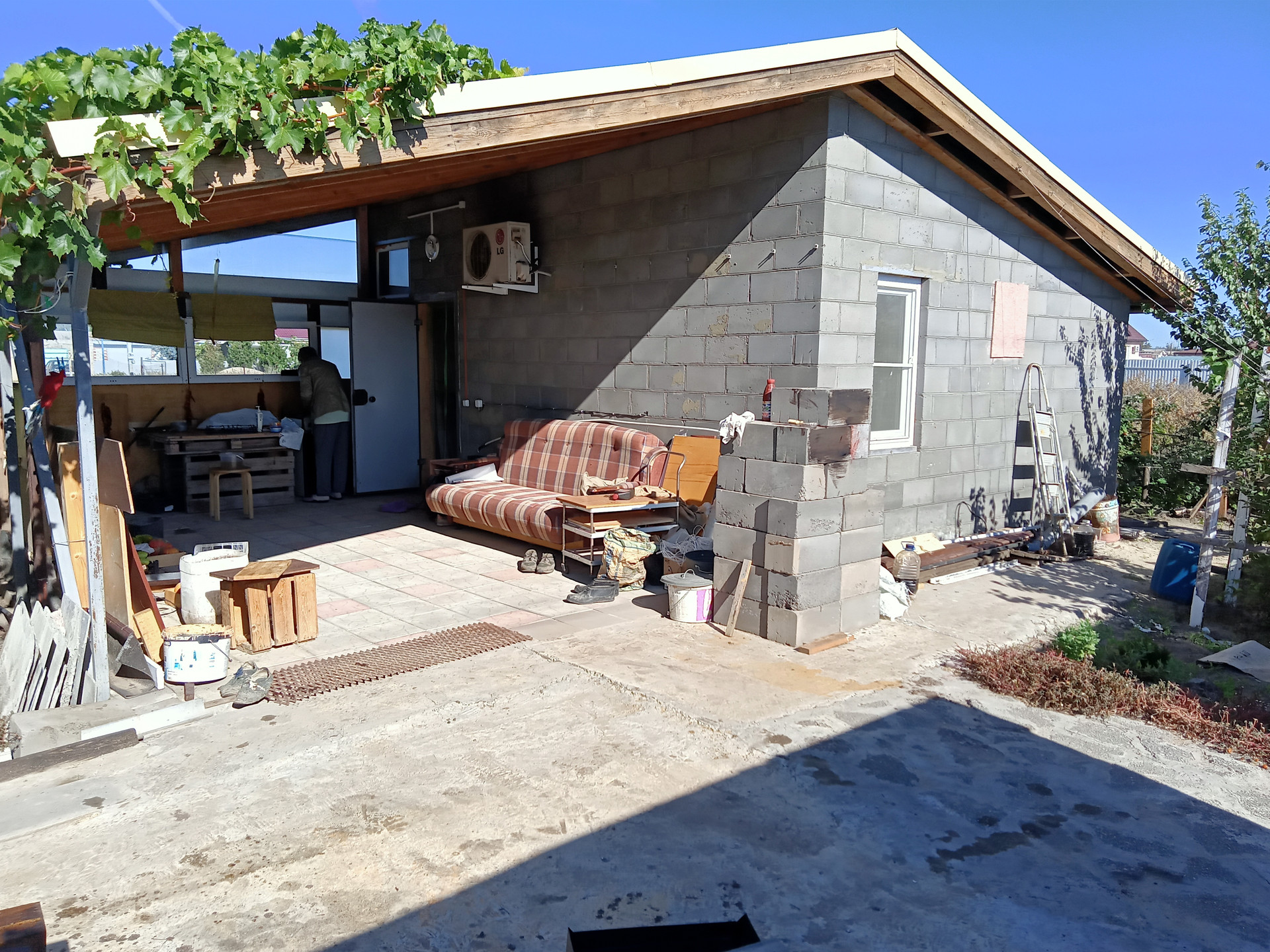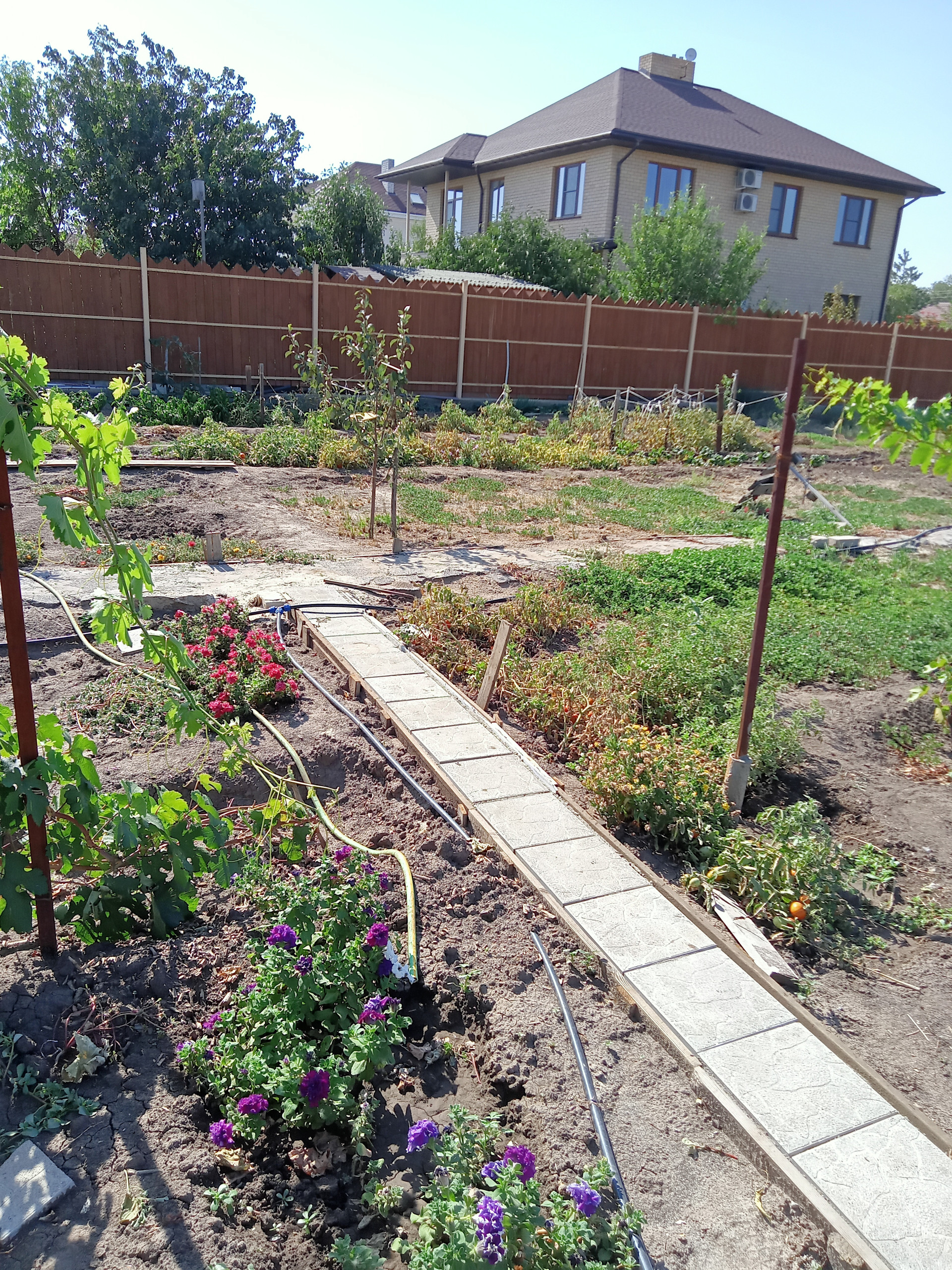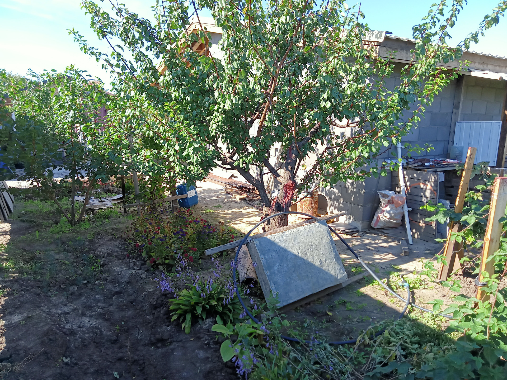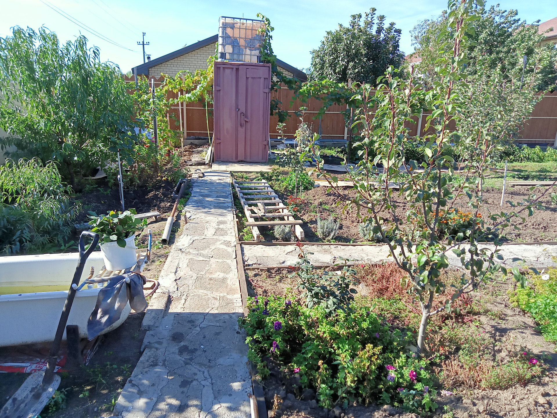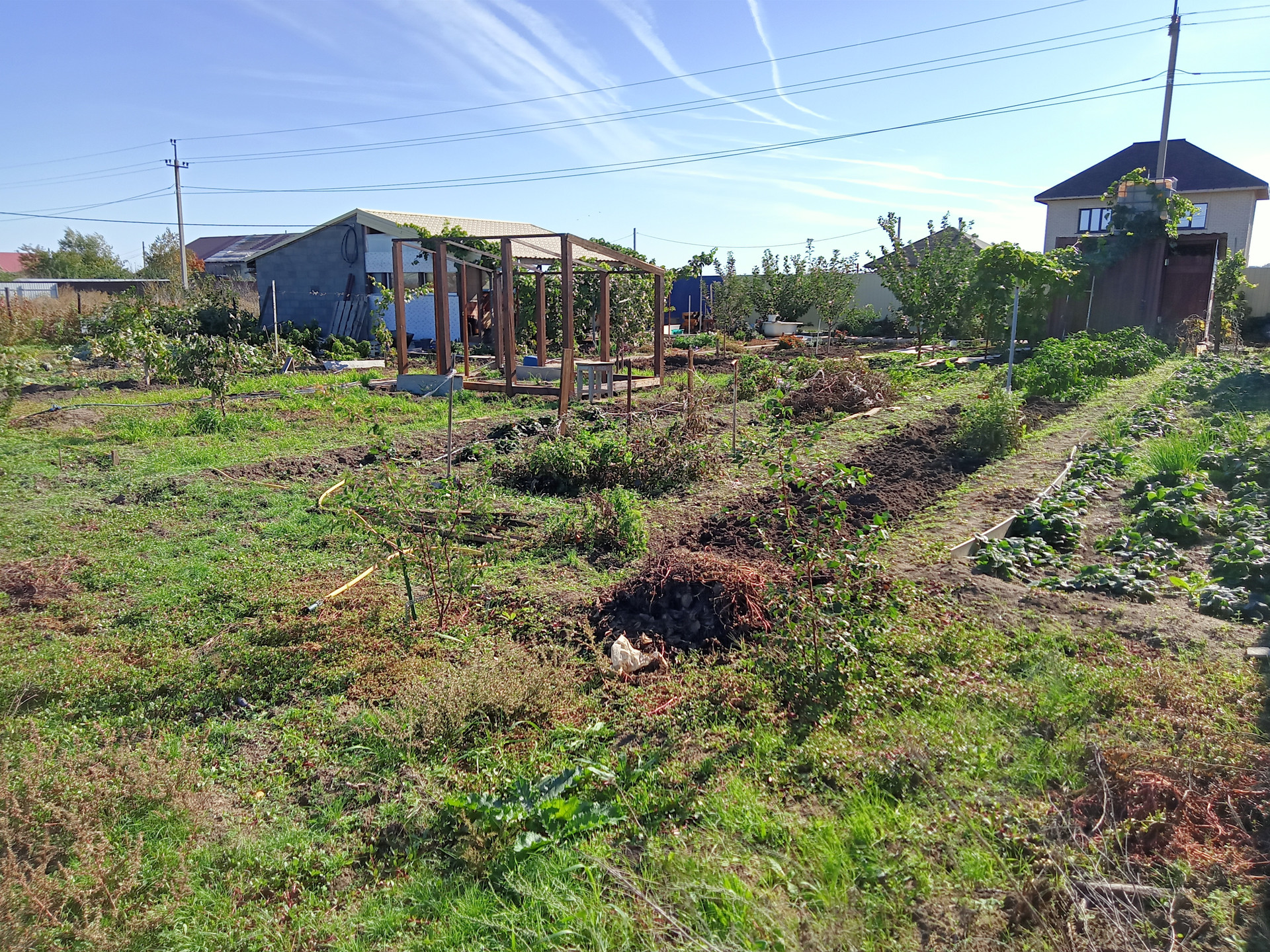 Участок с гостевым домом из керамзитобетона 6х4, металлосайдинг, утепление. В домике санузел, душевая кабина, кухня, сплит-система LG ,  веранда  6х4 с частичным остеклением. На участке жд контейнер для инструмента ( хозблок) с кубовой емкостью для капельного полива.  Молодой, но уже плодоносящий сад:  3 абрикоса, 3 персика, 2 яблони, 2 груши, 2 сливы, грецкий орех, айва, облепиха, актинидия. Все сортовое. Как и малина, клубника, ежевика.  8 сортов столового и технического винограда. Парник с каркасом  из бруса. Помимо центр. водоснабжения, скважина с  итальянским насосом, вода качественная. Сделан  отдельный колодец с  выпуском 3/4 для водоснабжения  запланир. коттеджа.  Канализация на 4 кольца. Дорожки. С лица асфальт, с проулка въездные ворота и щебеночная отсыпка.