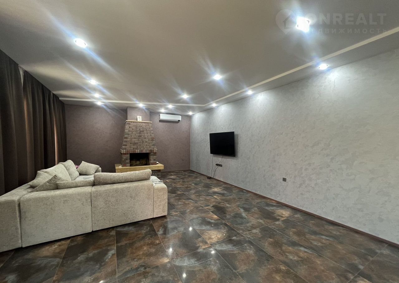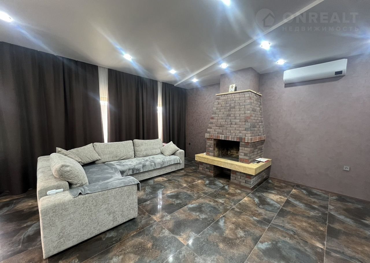 - Просторная гостиная с установленным камином и сплит системой