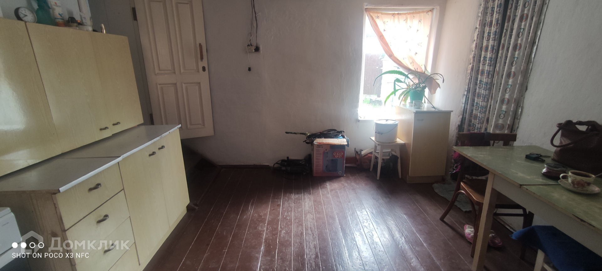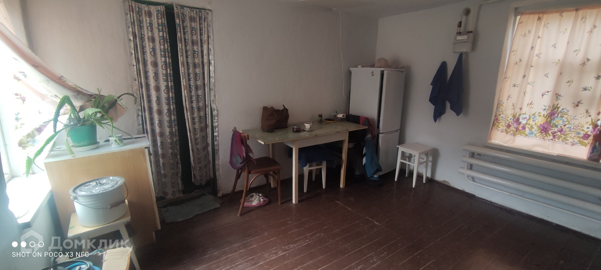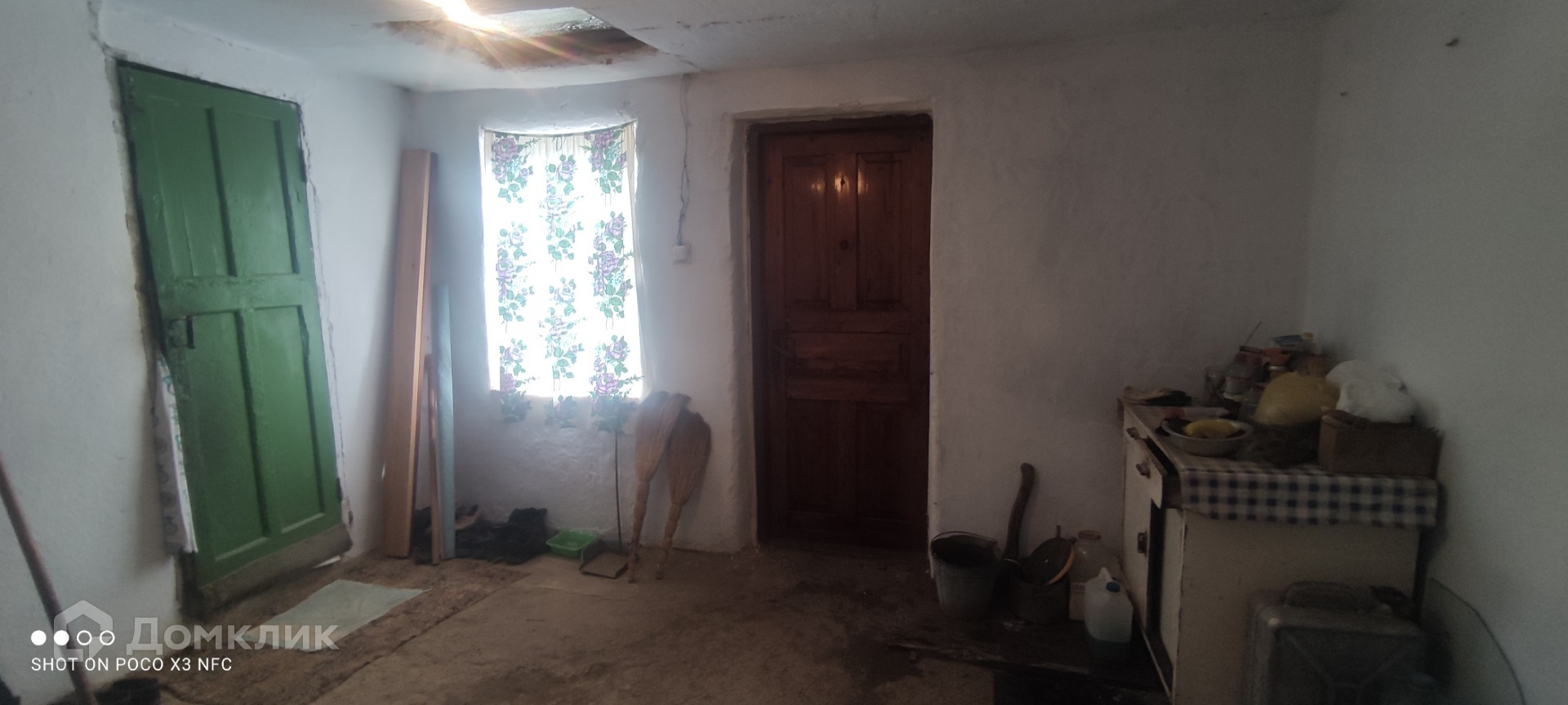 Дом крепкий,не треснутый,саман/кирпич.Потолки 3,5 метра. Хорошее ухоженое состояние,чисто,аккуратно.