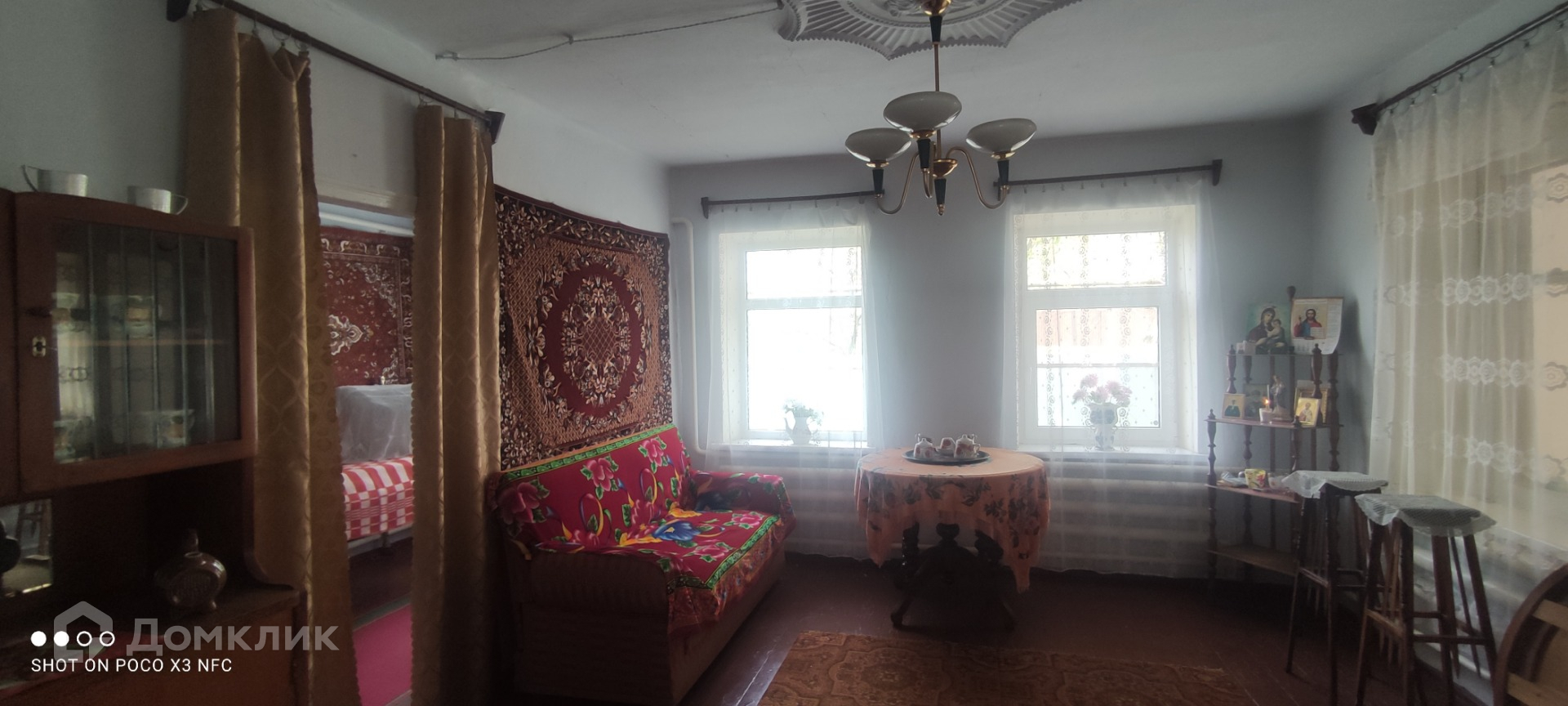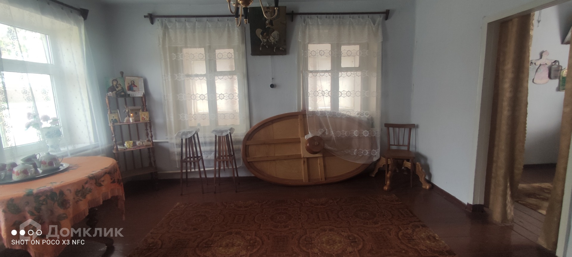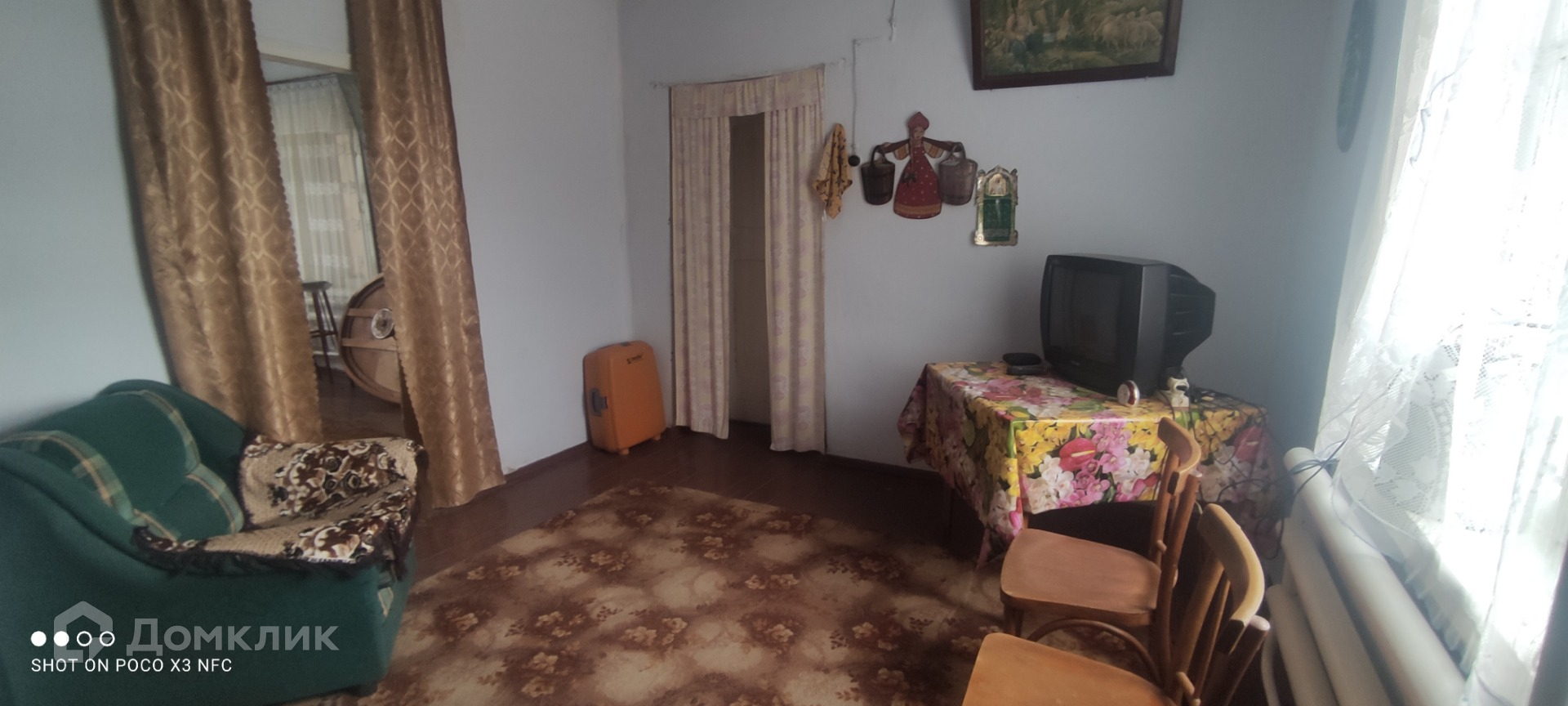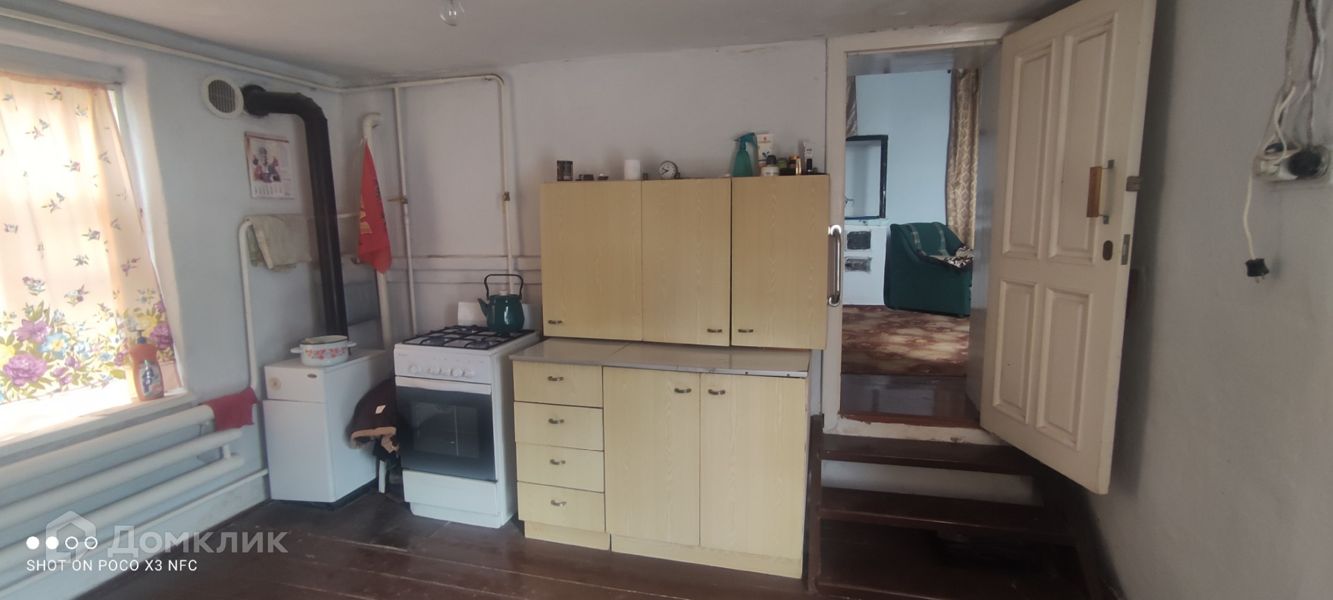 Дом крепкий,не треснутый,саман/кирпич.Потолки 3,5 метра. Хорошее ухоженое состояние,чисто,аккуратно.