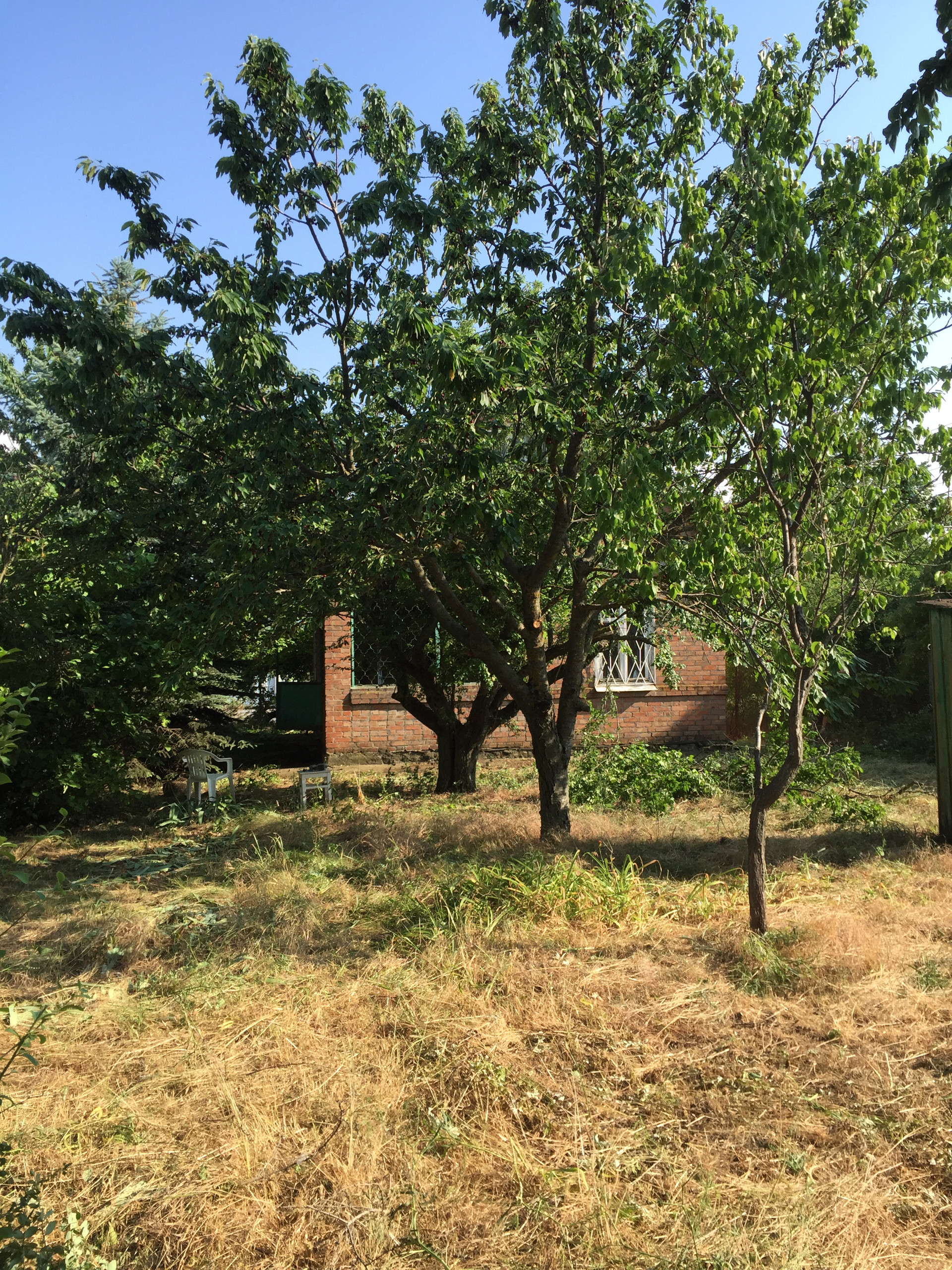 Участок ухоженный, чистый, много фруктовых деревьев: черешня, абрикос, орех, а также красивая большая ель. Есть беседка, большой бак для воды (для полива). Удобный подъезд - асфальтовая дорога до участка, а с другой стороны 2 въезд асфальт тоже почти до ворот. Участок огорожен забором и сеткой со всех сторон.