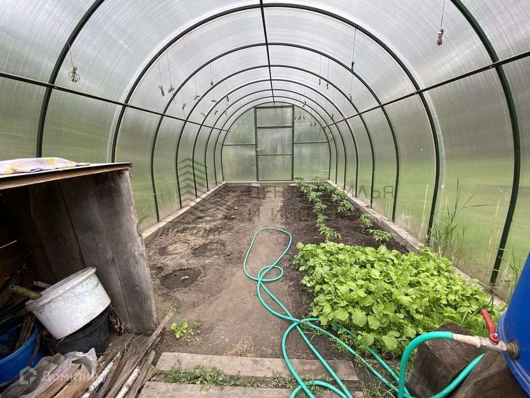 на участке имеется теплица из поликарбоната, посажены цветы, деревья;