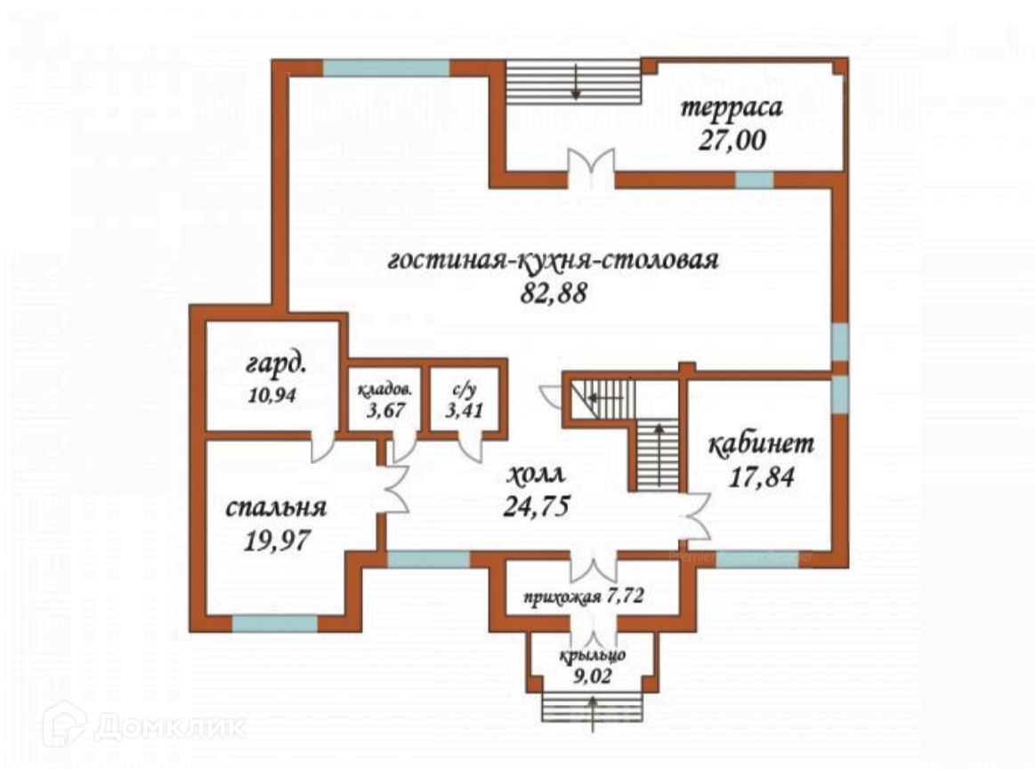 Первый этаж: прихожая, холл, гардеробная, просторная кухня-столовая-гостиная с выходом на террасу, гостевая спальня, кабинет, с/у, терраса;